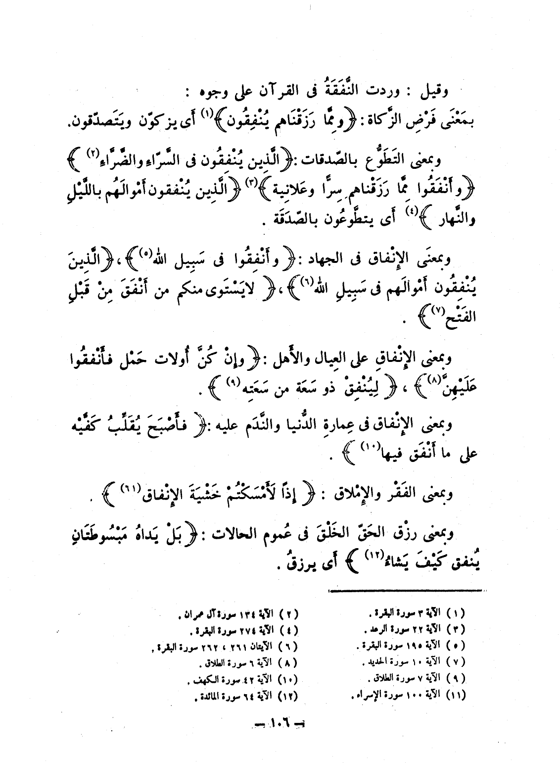 وقيل: وردت النَّفَقَةُ فى القرآن على وجوه: