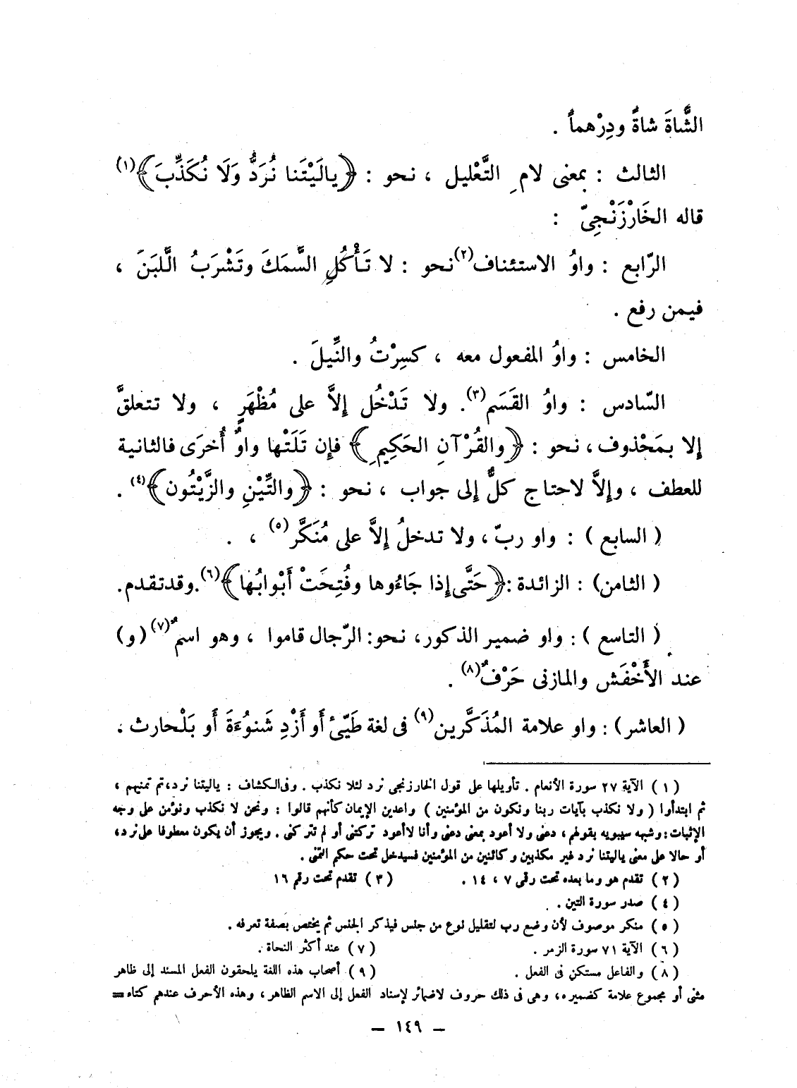 (العاشر) : واو علامة المُذَكَّرين فى لغة طَيّئ أَو أَزْدِ شَنوُءَةَ أَو بَلْحارث.