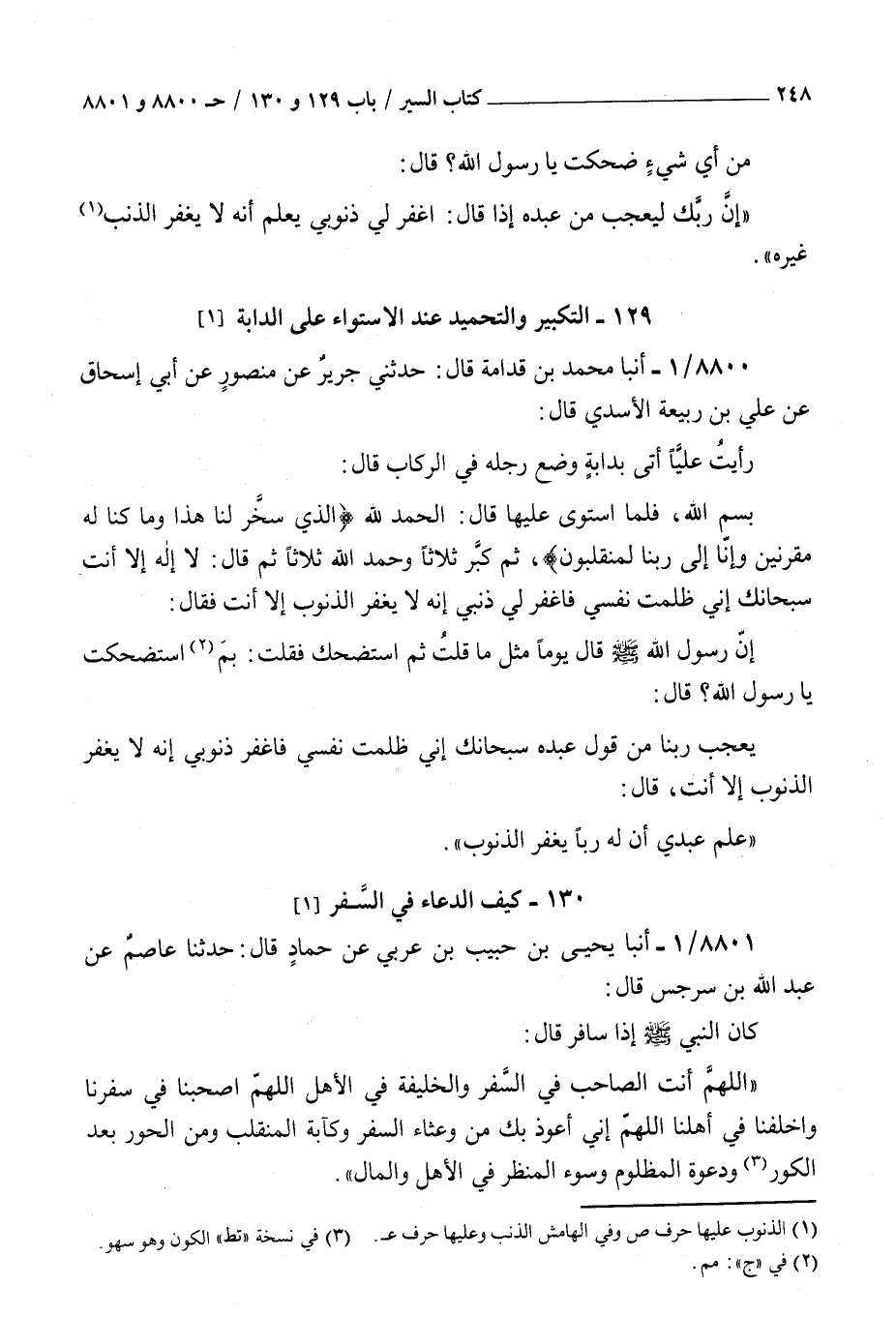 ( 129 التكبير والتحميد عند الاستواء على الدابة )