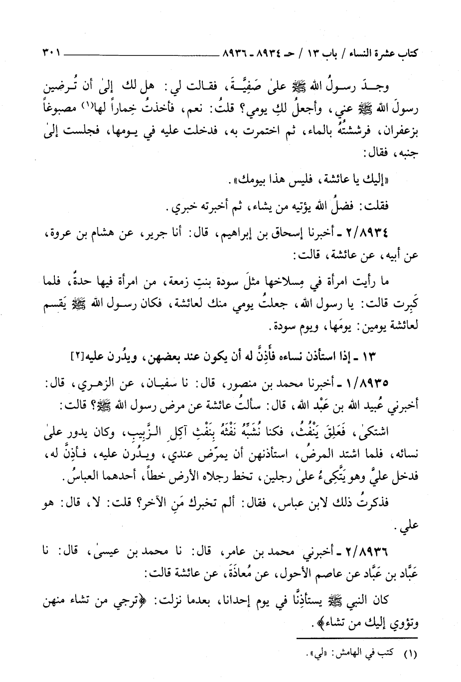 ( 13 إذا استأذن نساءه فأذن له أن يكون عند بعضهن ويدرن عليه )