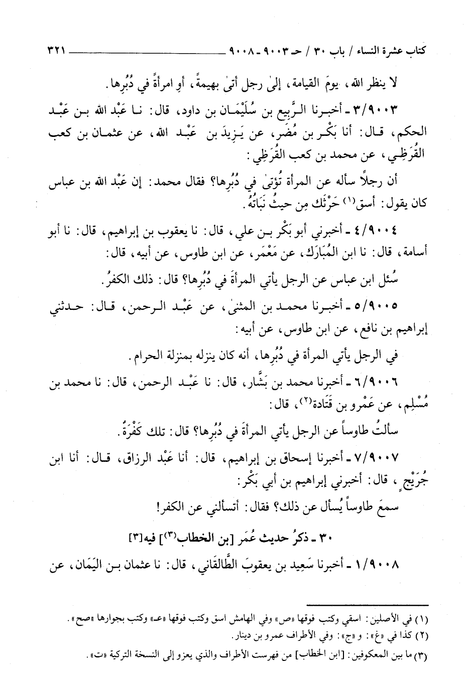9008 - أخبرنا سعيد بن يعقوب الطالقاني قال نا عثمان بن اليمان عن زمعة بن صالح عن بن طاوس عن أبيه عن بن الهاد عن عمر بن الخطاب عن النبي صلى الله عليه و سلم قال : لا تأتوا النساء في أدبارهن