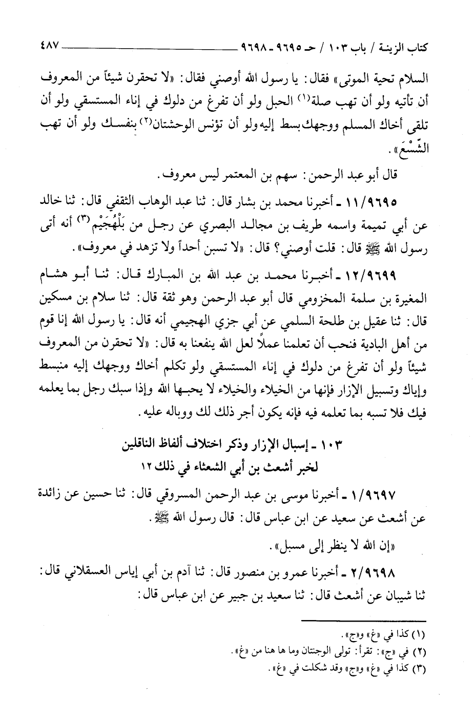 ( 103 إسبال الإزار وذكر اختلاف ألفاظ الناقلين لخبر أشعث بن أبي الشعثاء في ذلك )