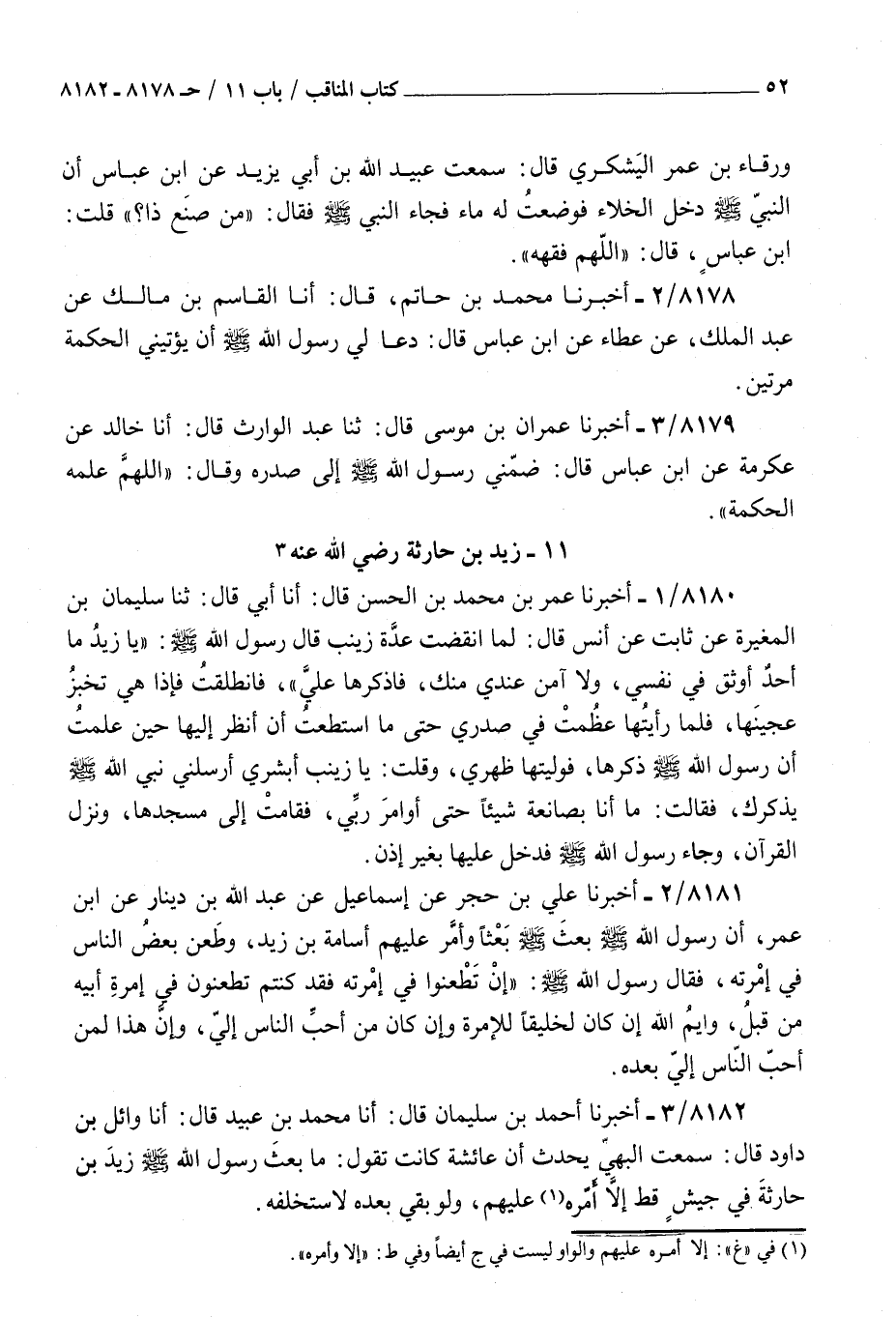 8179 - أخبرنا عمران بن موسى قال ثنا عبد الوارث قال أنا خالد عن عكرمة عن بن عباس قال : ضمني رسول الله صلى الله عليه و سلم إلى صدره وقال اللهم علمه الحكمة