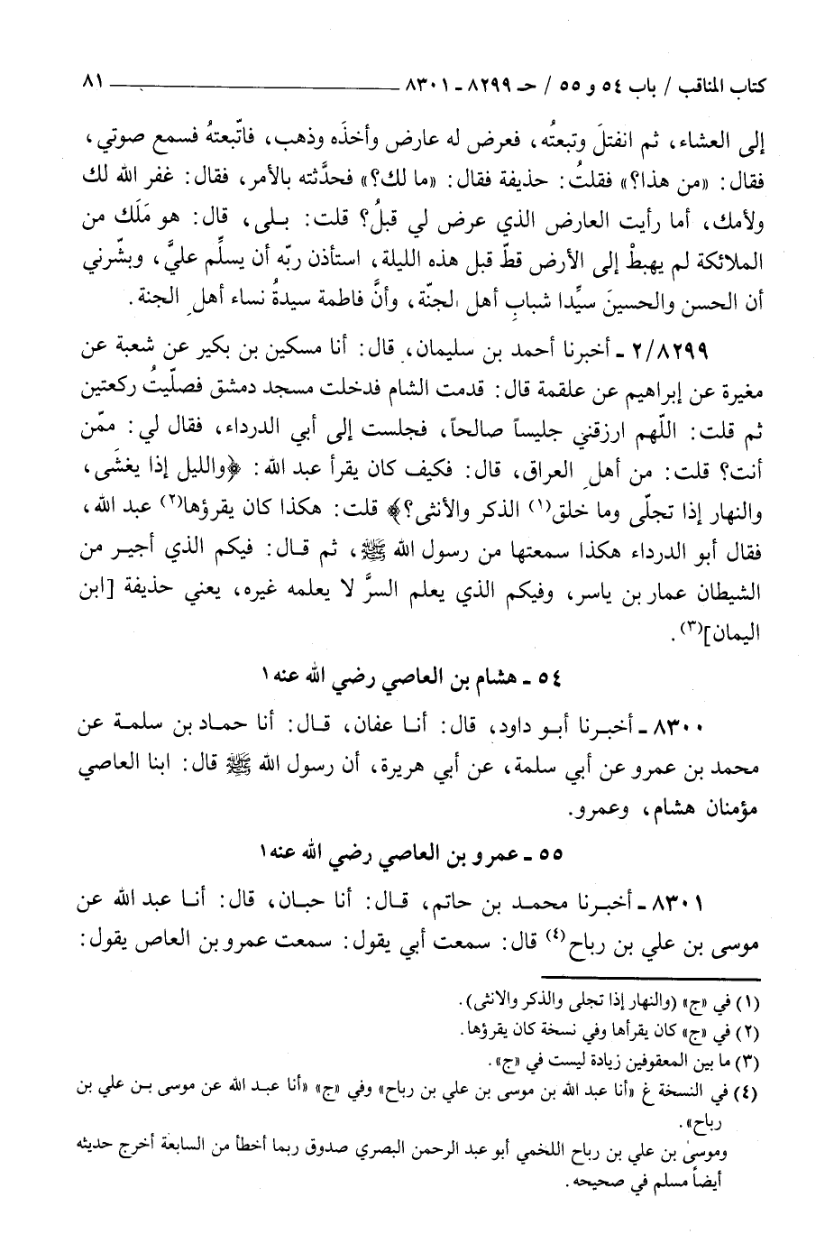 8300 - أخبرنا أبو داود قال أنا عفان قال أنا حماد بن سلمة عن محمد بن عمرو عن أبي سلمة عن أبي هريرة أن رسول الله صلى الله عليه و سلم قال : ابنا العاصي مؤمنان هشام وعمرو