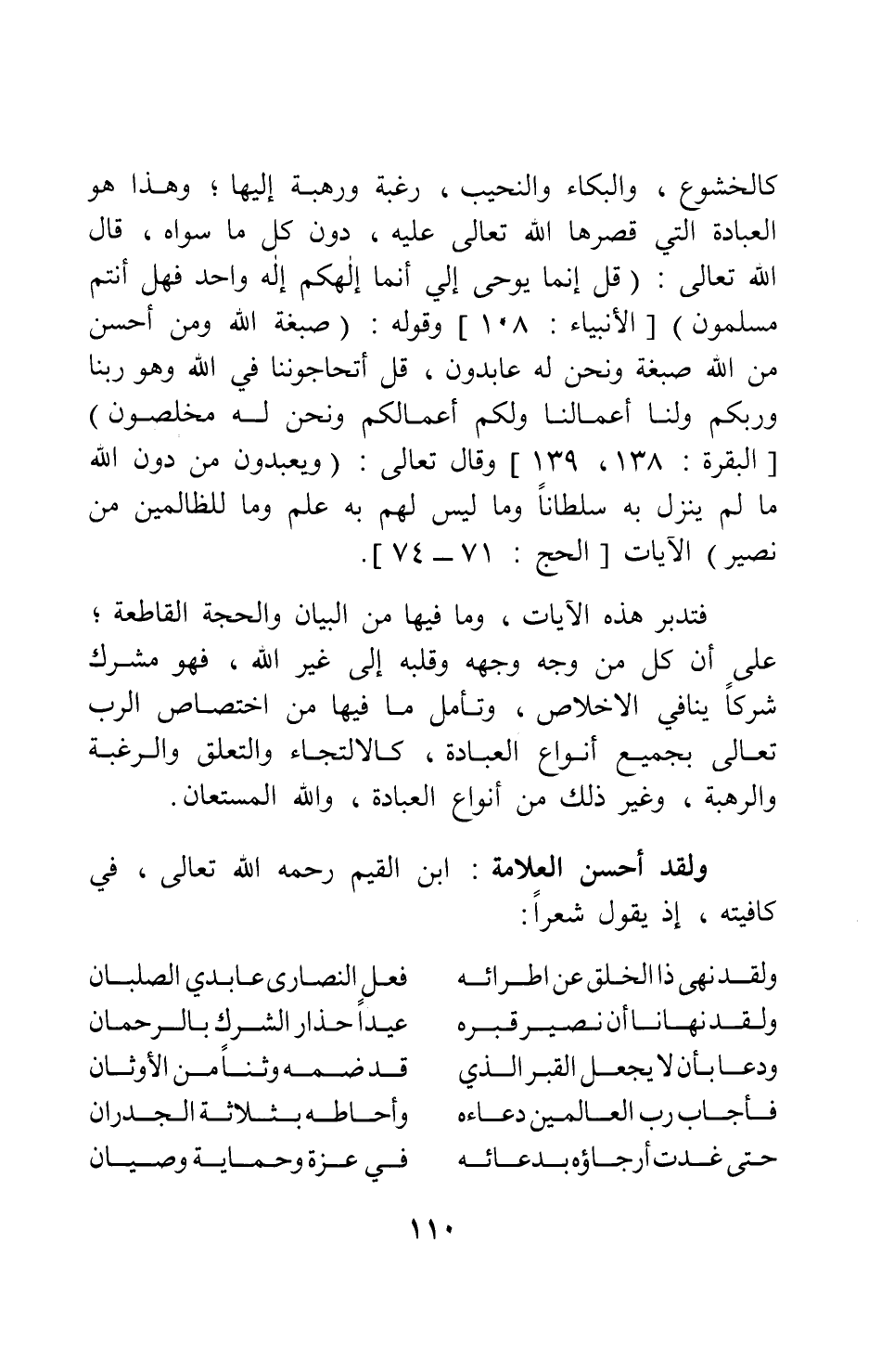 فتدبر هذه الآيات، وما فيها من البيان والحجة القاطعة على أن كل من وجه وجهه وقلبه إلى غير الله، فهو مشرك شركاً ينافي الإخلاص، وتأمل ما فيها من اختصاص الرب تعالى بجميع أنواع العبادة، كالالتجاء والتعلق والرغبة والرهبة، وغير ذلك من أنواع العبادة؛ والله المستعان.