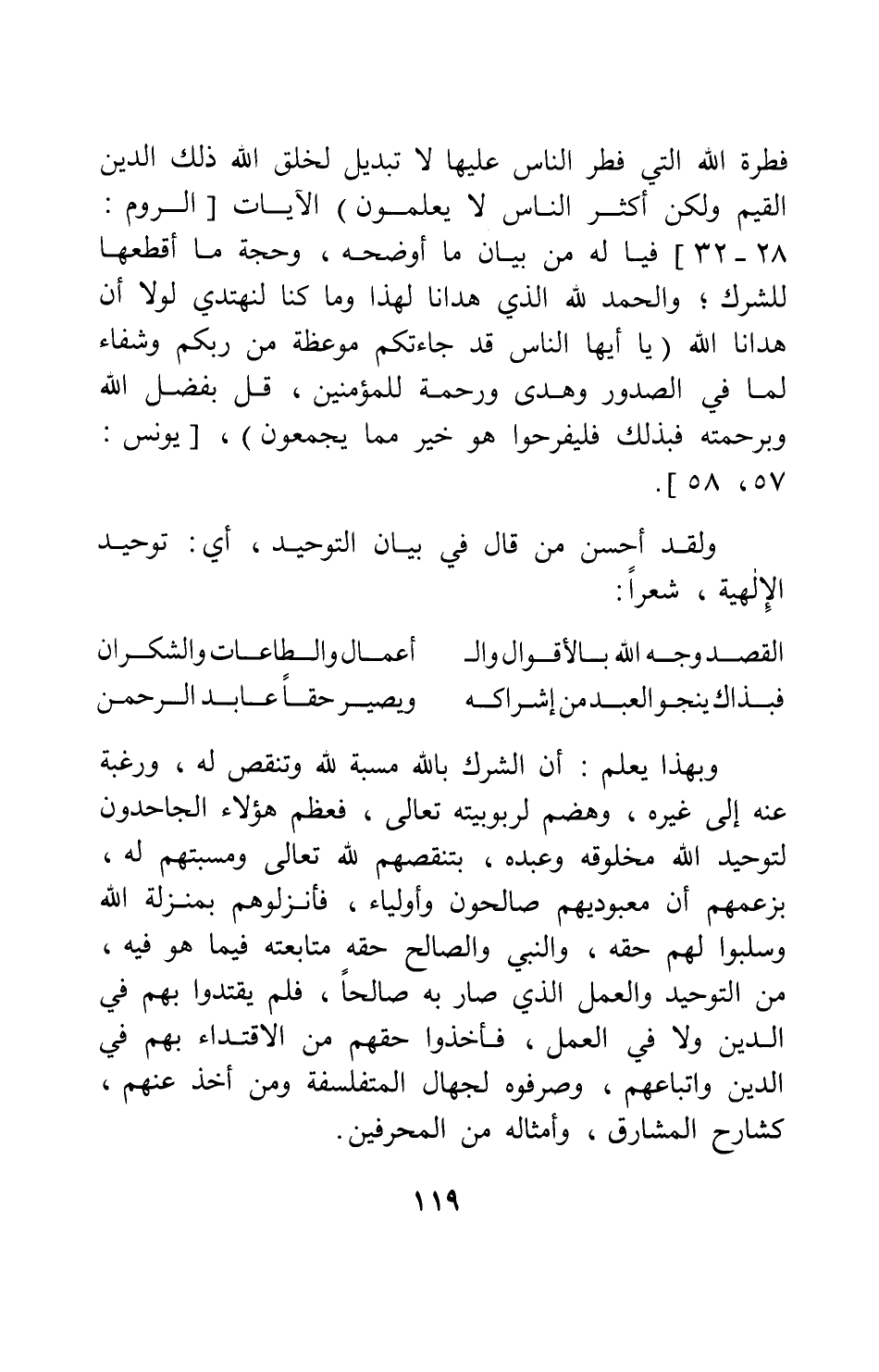 ولقد أحسن من قال في بيان التوحيد، أي: توحيد الإلهية، شعراً:
