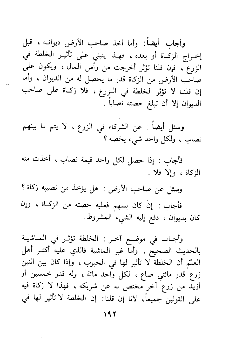 وسئل أيضاً: عن الشركاء في الزرع، لا يتم ما بينهم نصاب، ولكل واحد شيء يخصه؟