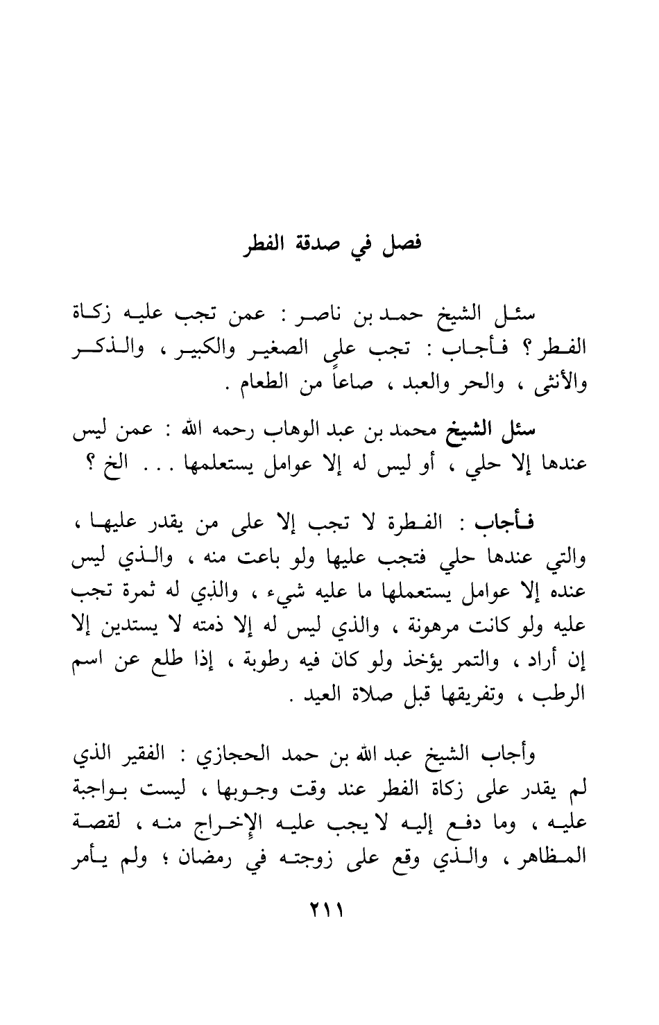 سئل الشيخ حمد بن ناصر: عمن تجب عليه زكاة الفطر؟