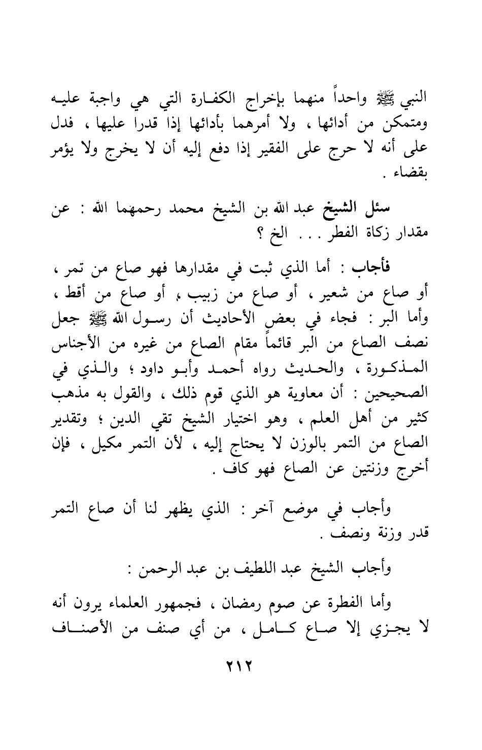سئل الشيخ عبد الله بن الشيخ محمد، رحمهما الله: عن مقدار زكاة الفطر ... إلخ؟
