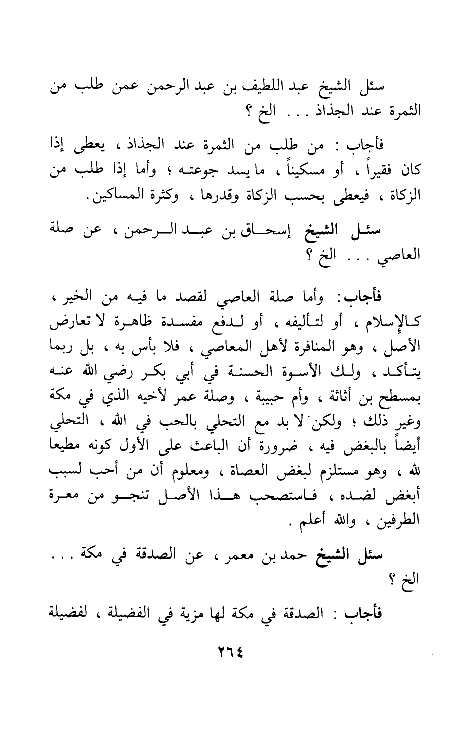 سئل الشيخ إسحاق بن عبد الرحمن: عن صلة العاصي ... إلخ؟