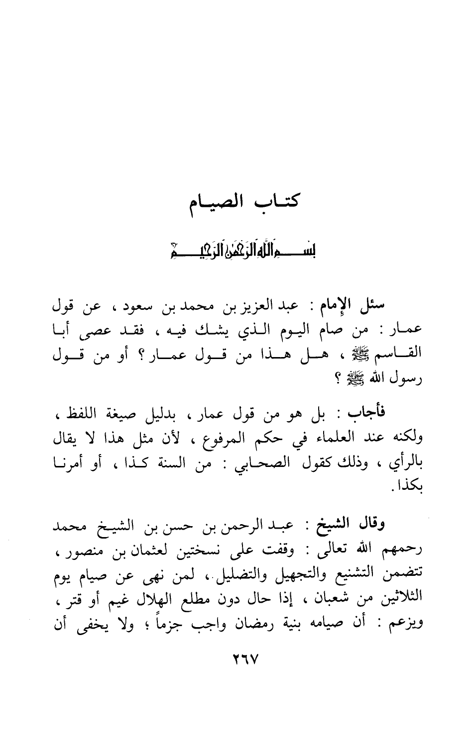 سئل الإمام عبد العزيز بن محمد بن سعود: عن قول عمار: " من صام اليوم الذي يشك فيه، فقد عصى أبا القاسم صلى الله عليه وسلم "، هل هذا من قول عمار؟ أو من قول رسول الله صلى الله عليه وسلم؟