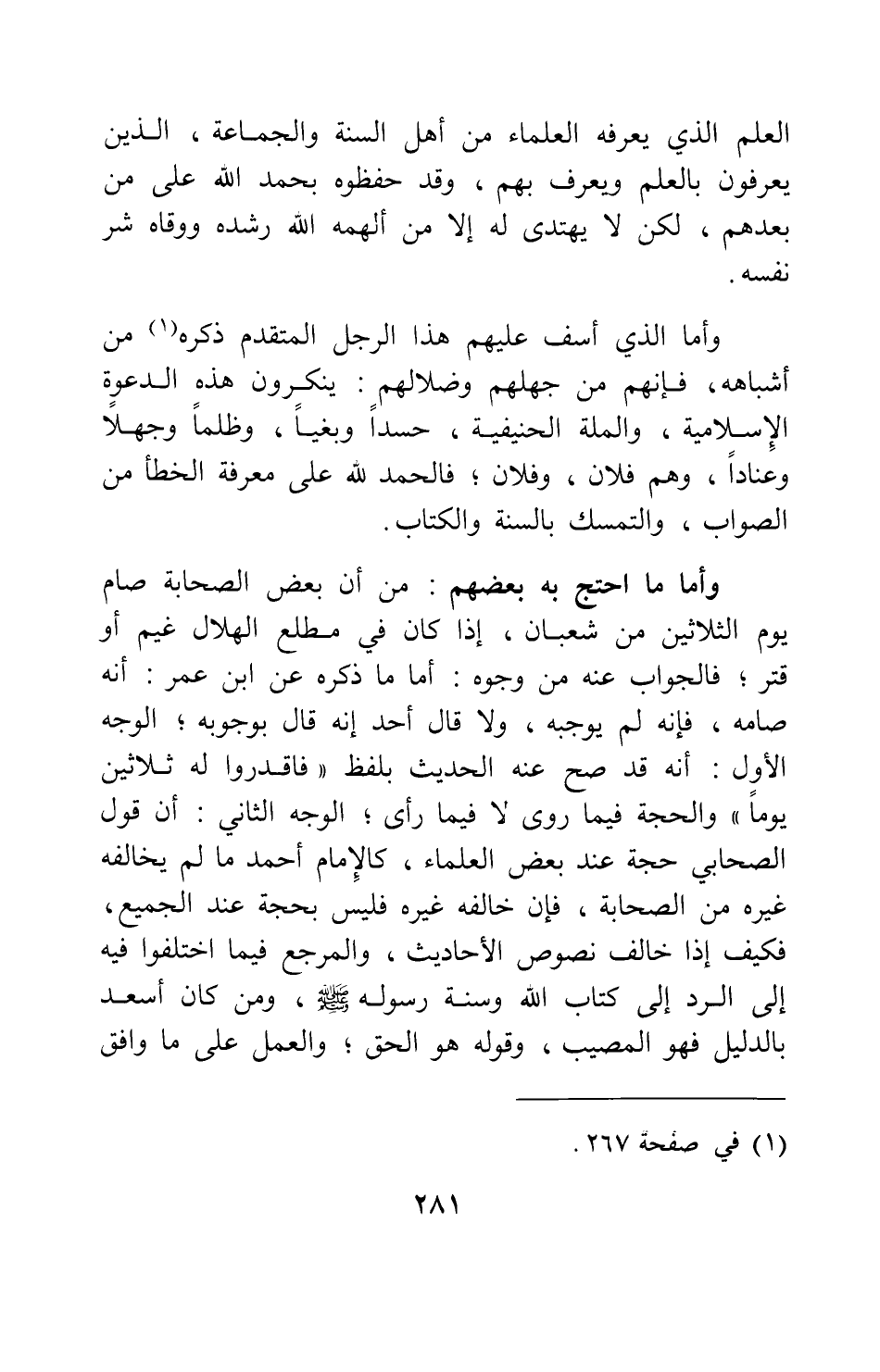 وأما الذي أسف عليهم هذا الرجل المتقدم ذكره 1 من أشباهه، فإنهم من جهلهم وضلالهم ينكرون هذه الدعوة الإسلامية، والملة الحنيفية، حسداً وبغياً، وظلماً وجهلاً وعناداً، وهم فلان، وفلان، فالحمد لله على معرفة الخطإ من الصواب، والتمسك بالسنة والكتاب.