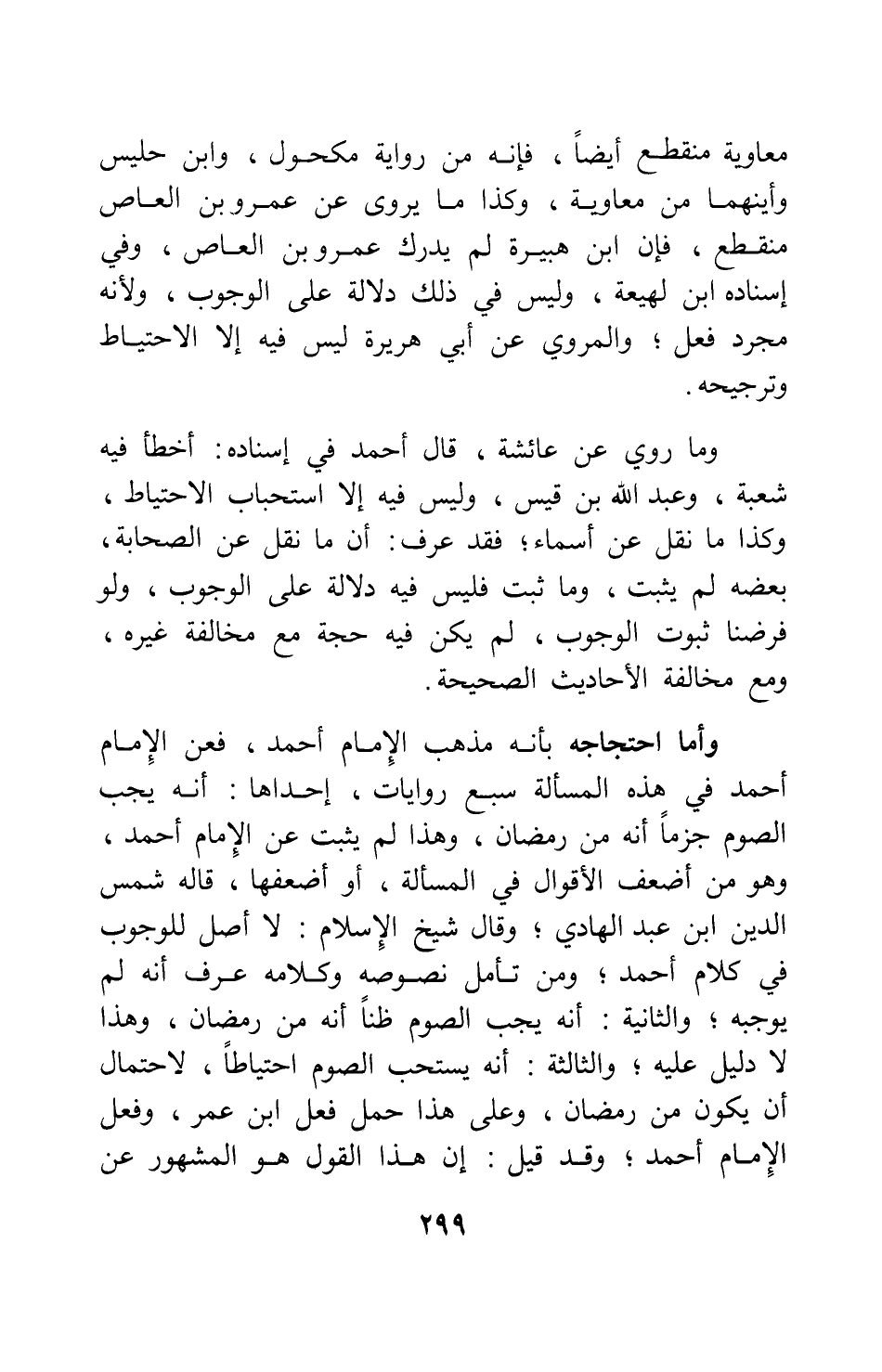 معاوية منقطع أيضاً، فإنه من رواية مكحول، وابن حليس وأينهما من معاوية؟ وكذا ما يروى عن عمرو بن العاص منقطع، فإن ابن هبيرة لم يدرك عمرو بن العاص، وفي إسناده ابن لهيعة، وليس في ذلك دلالة على الوجوب، ولأنه مجرد فعل، والمروي عن أبي هريرة ليس فيه إلا الاحتياط وترجيحه.