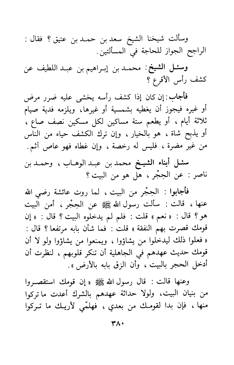 سئل أبناء الشيخ محمد بن عبد الوهاب، وحمد بن ناصر: عن الحِجْر، هل هو من البيت؟