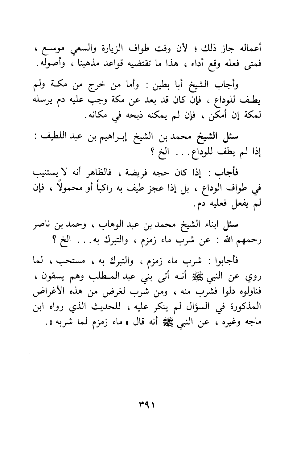 سئل الشيخ محمد بن الشيخ إبراهيم بن عبد اللطيف: إذا لم يطف للوداع ... إلخ؟