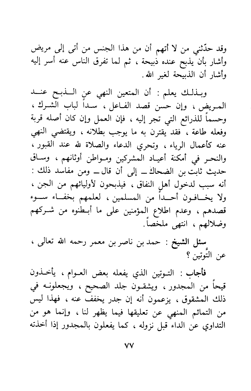 سئل الشيخ حمد بن ناصر بن معمر، رحمه الله تعالى: عن التوتين؟