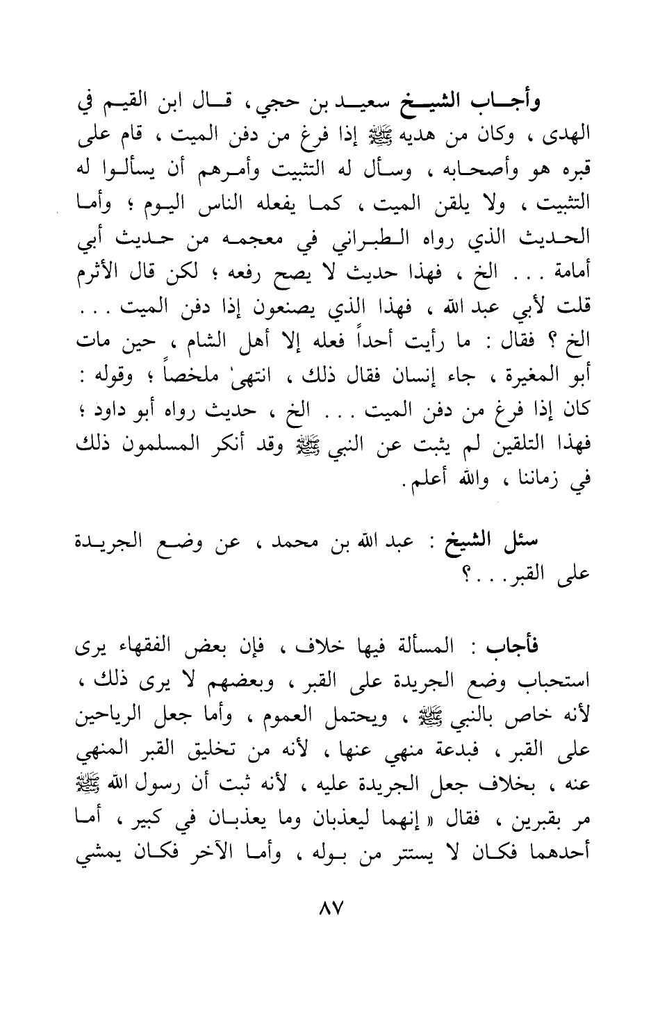سئل الشيخ عبد الله بن محمد: عن وضع الجريدة على القبر ... ؟