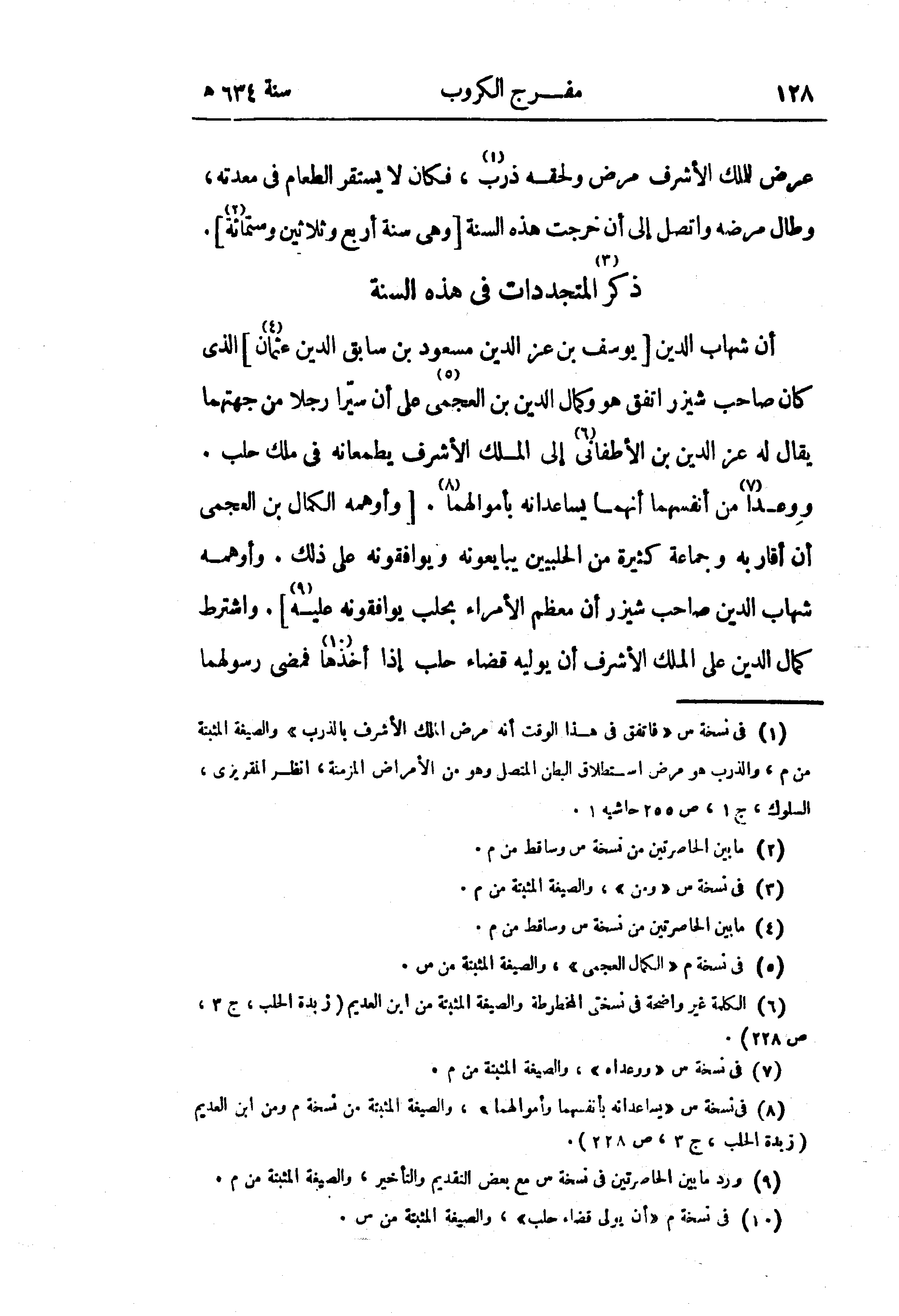 (¬6) الكلمة غير واضحة في نسختى المخطوطة والصيغة المثبتة من ابن العديم (زبدة الحلب، ج 3، ص 228).