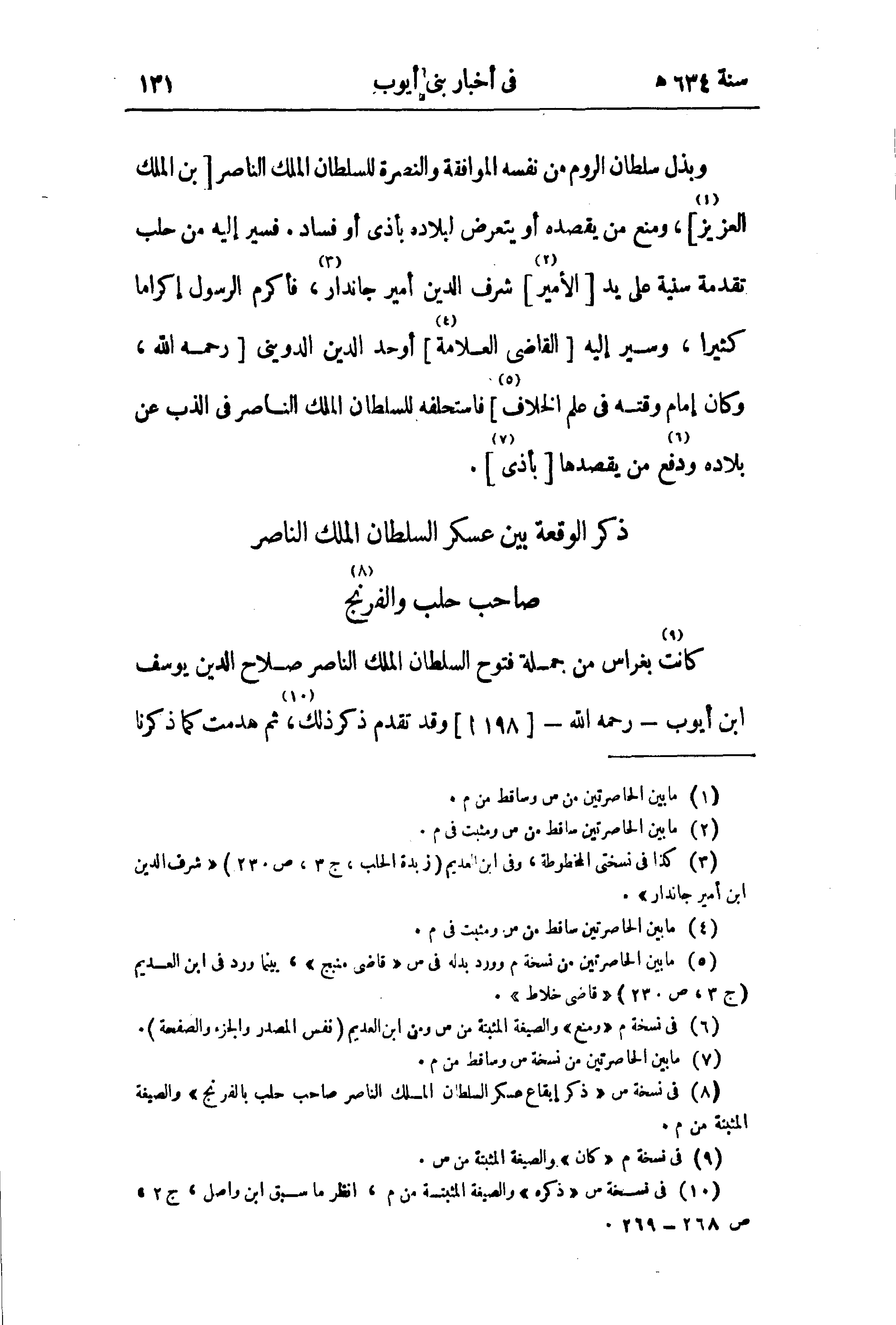 (¬10) في نسخة س «ذكره» والصيغة المثبتة من م، انظر ما سبق ابن واصل، ج 2، ص 268 - 269.