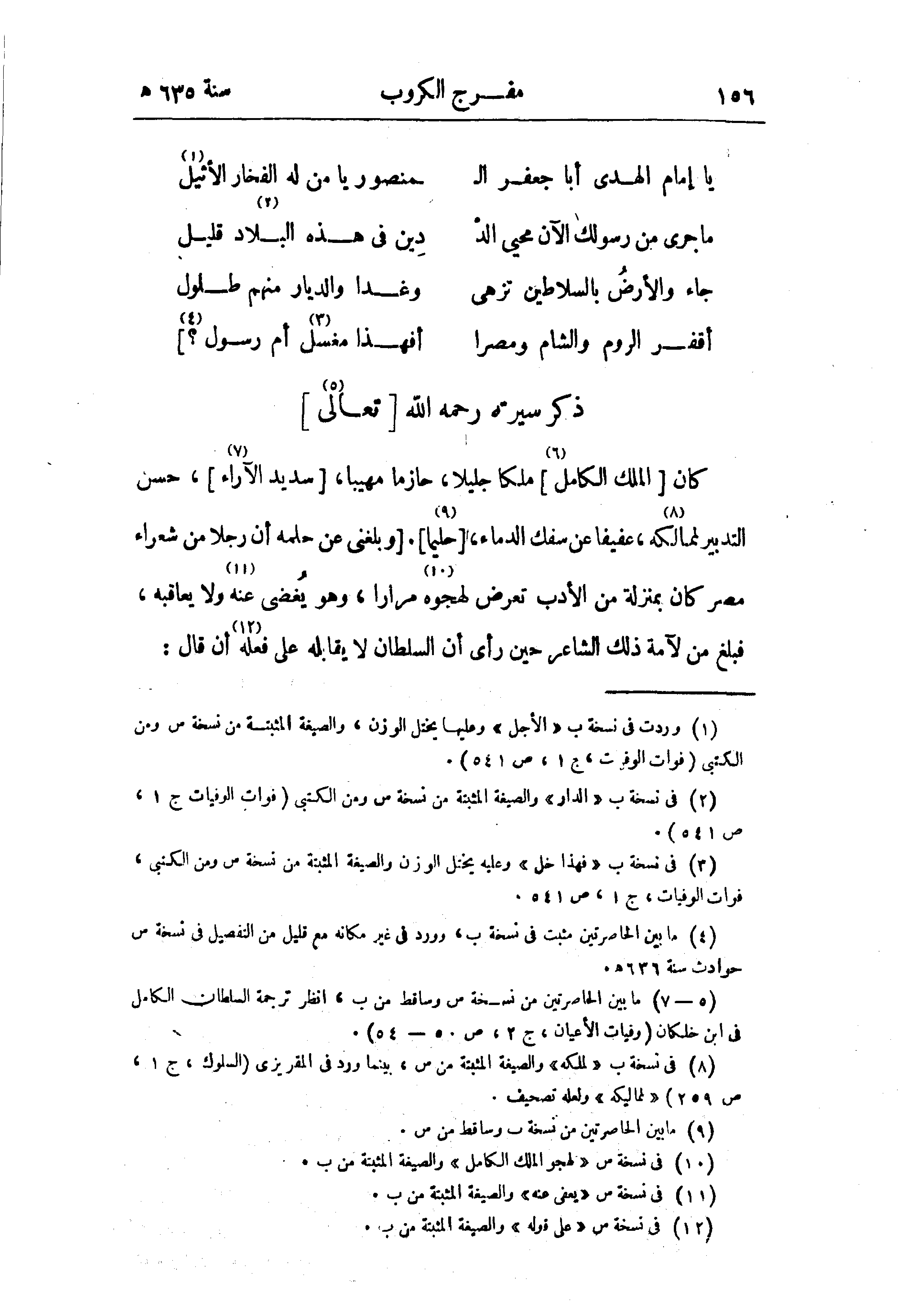(¬5) ما بين الحاصرتين من نسخة س وساقط من ب، انظر ترجمة السلطان الكامل في ابن خلكان (وفيات الأعيان، ج 2، ص 50 - 54).