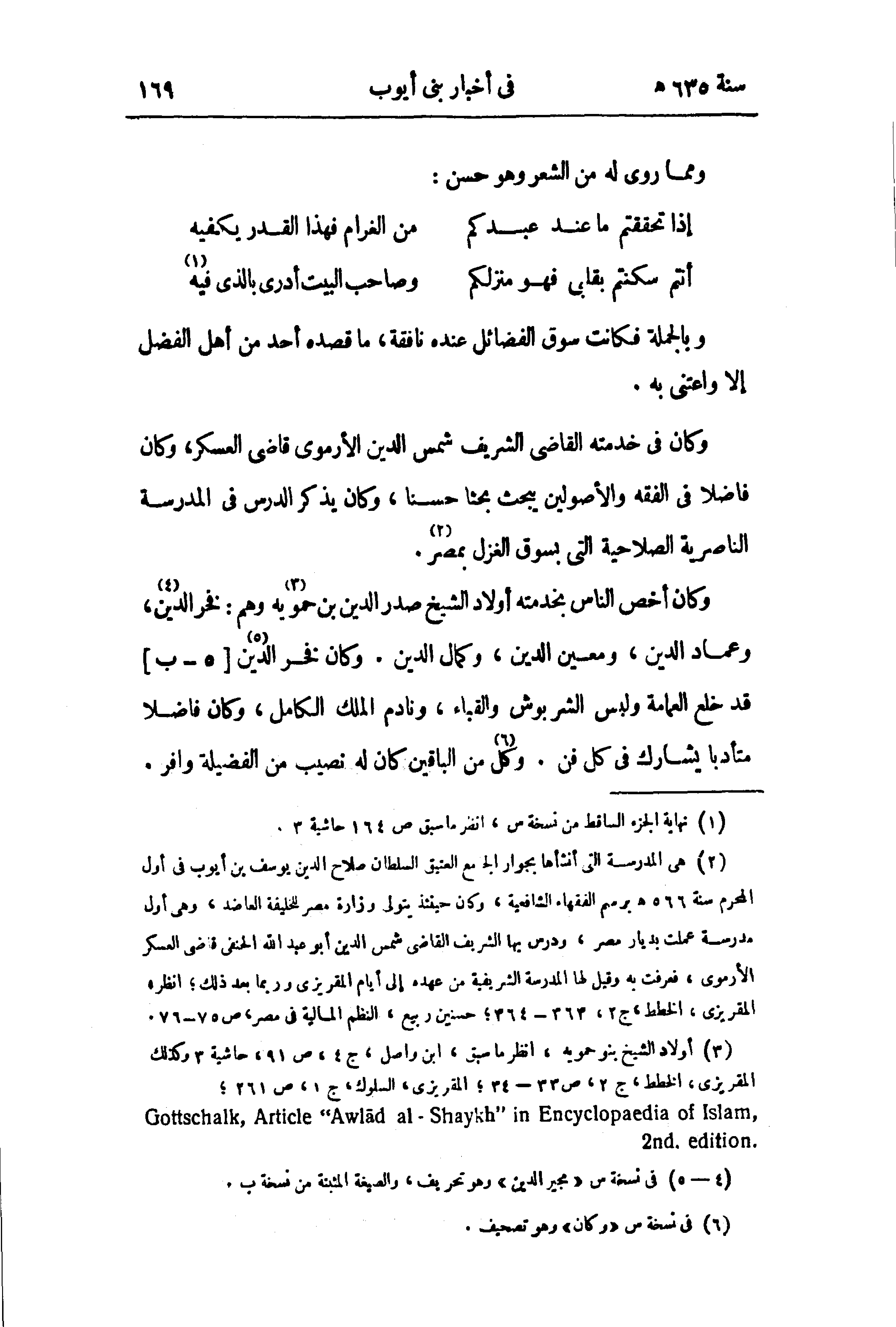 (¬3) أولاد الشيخ بنو حمويه، انظر ما سبق، ابن واصل، ج 4، ص 91، حاشية 3 وكذلك المقريزى، الخطط، ج 2، ص 33 - 34؛ المقريزى، السلوك، ج 1، ص 261؛ Gottschalk, Article, Awlad al - Shaykh, in Encyclopaedia of Islam, 2nd. edition.