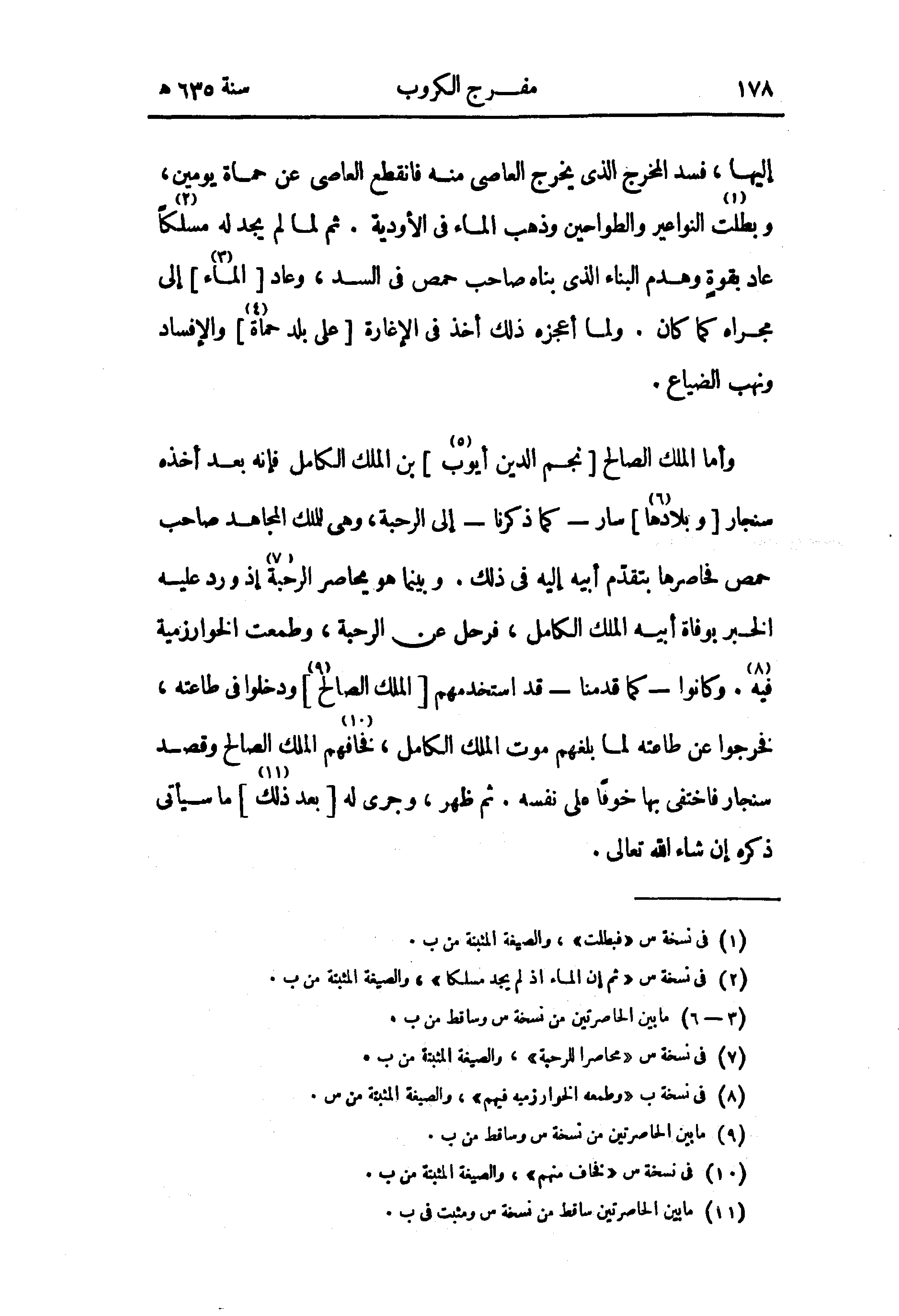 وأما الملك الصالح [نجم الدين أيوب (¬5)] بن الملك الكامل فإنه بعد أخذه سنجار [وبلادها (¬6)] سار - كما ذكرنا - إلى الرحبة، وهى للملك المجاهد صاحب حمص فحاصرها بتقدّم أبيه إليه في ذلك. وبينما هو يحاصر الرحبة (¬7) إذ ورد عليه الخبر بوفاة أبيه الملك الكامل، فرحل عن الرحبة، وطمعت الخوارزمية فيه (¬8). وكانوا - كما قدمنا - قد استخدمهم [الملك الصالح (¬9)] ودخلوا في طاعته، فخرجوا عن طاعته لما بلغهم موت الملك الكامل، فخافهم (¬10) الملك الصالح وقصد سنجار فاختفى بها خوفا على نفسه. ثم ظهر، وجرى له [بعد ذلك (¬11)] ما سيأتى ذكره إن شاء الله تعالى.