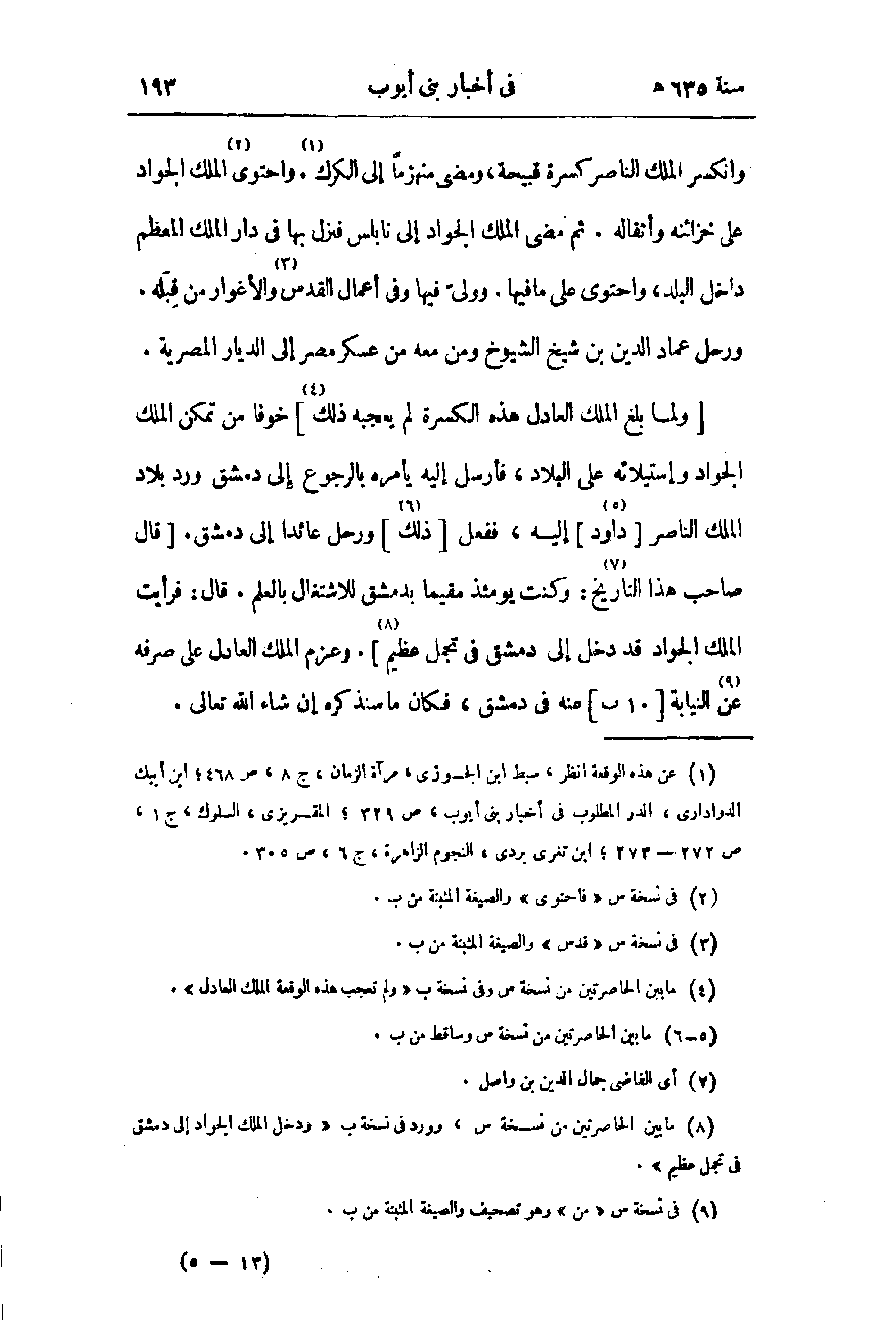 (¬1) عن هذه الوقعة انظر، سبط ابن الجوزى، مرآة الزمان، ج 8، ص 468؛ ابن أيبك الدوادارى، الدر المطلوب في أخبار بنى أيوب، ص 329؛ المقريزى، السلوك، ج 1، ص 272 - 273؛ ابن تغرى بردى، النجوم الزاهرة، ج 6، ص 305.