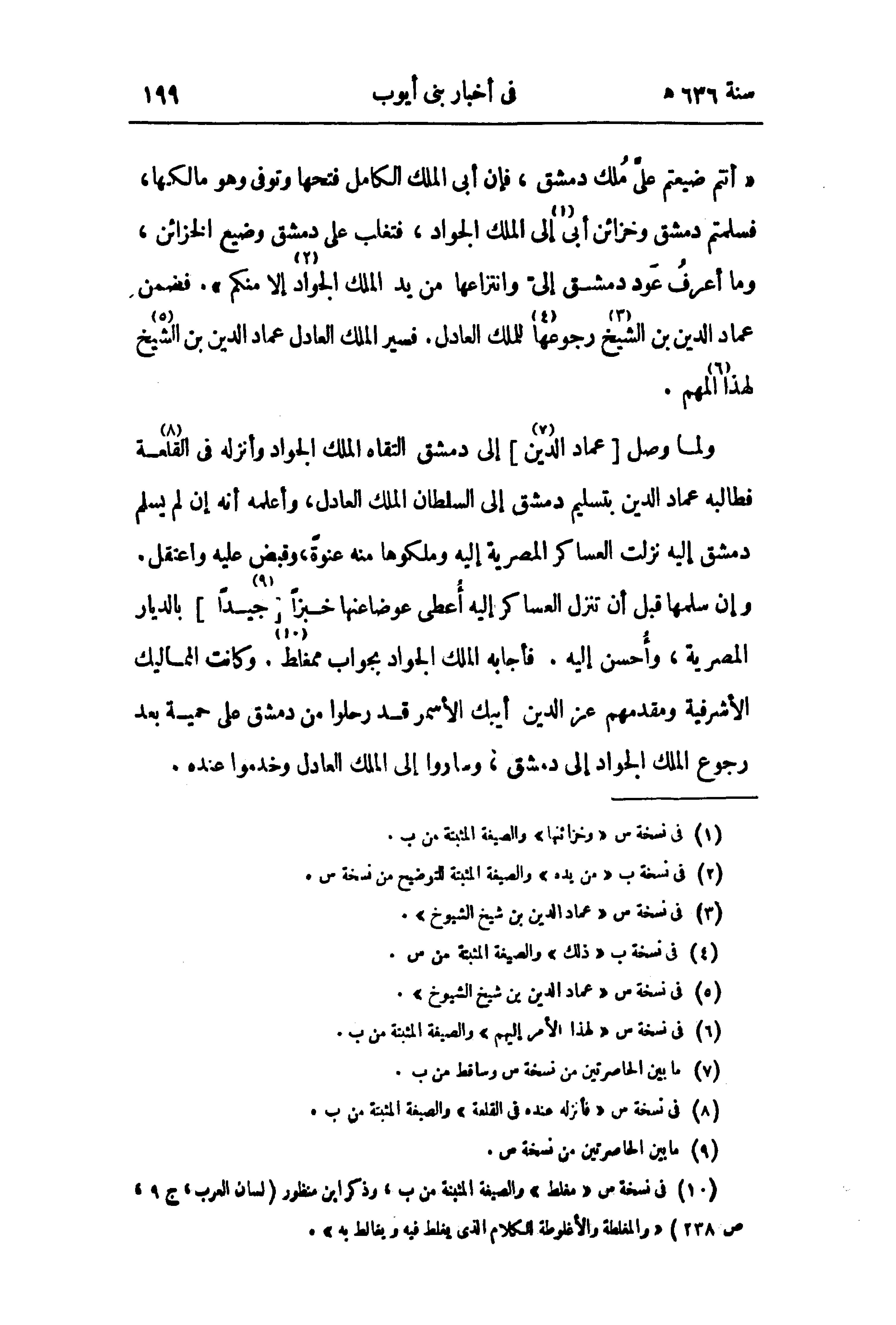 «أنتم ضيعتم علىّ ملك دمشق، فإن أبى الملك الكامل فتحها وتوفى وهو مالكها، فسلمتم دمشق وخزائن أبى (¬1) إلى الملك الجواد، فتغلب على دمشق وضيع الخزائن، وما أعرف عود دمشق إلىّ وانتزاعها من يد الملك الجواد (¬2) إلا منكم». فضمن عماد الدين بن الشيخ (¬3) رجوعها (¬4) للملك العادل. فسير الملك العادل عماد الدين بن الشيخ (¬5) لهذا (¬6) المهم.