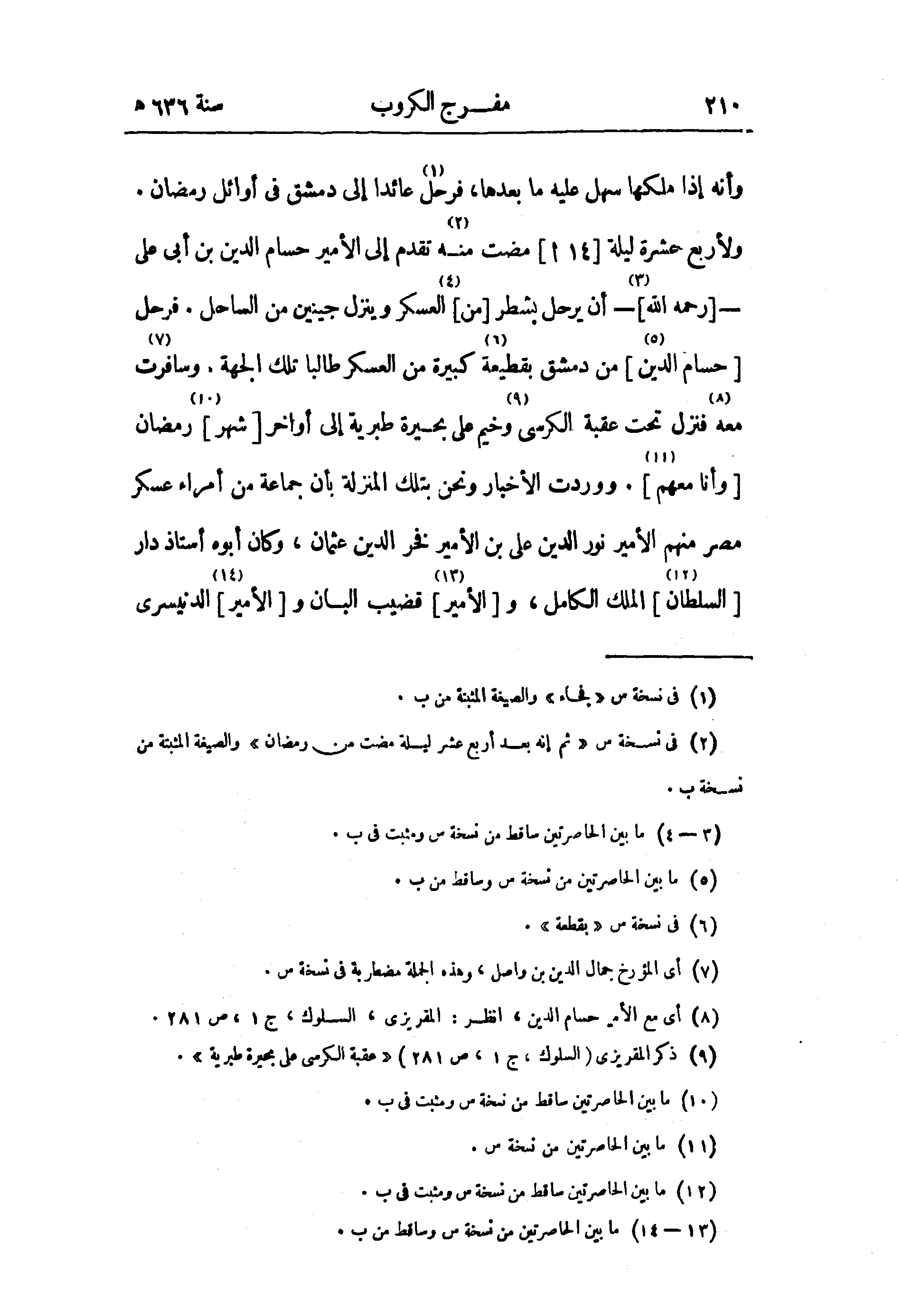 (¬7) أي المؤرخ جمال الدين بن واصل، وهذه الجملة مضطربة في نسخة س.