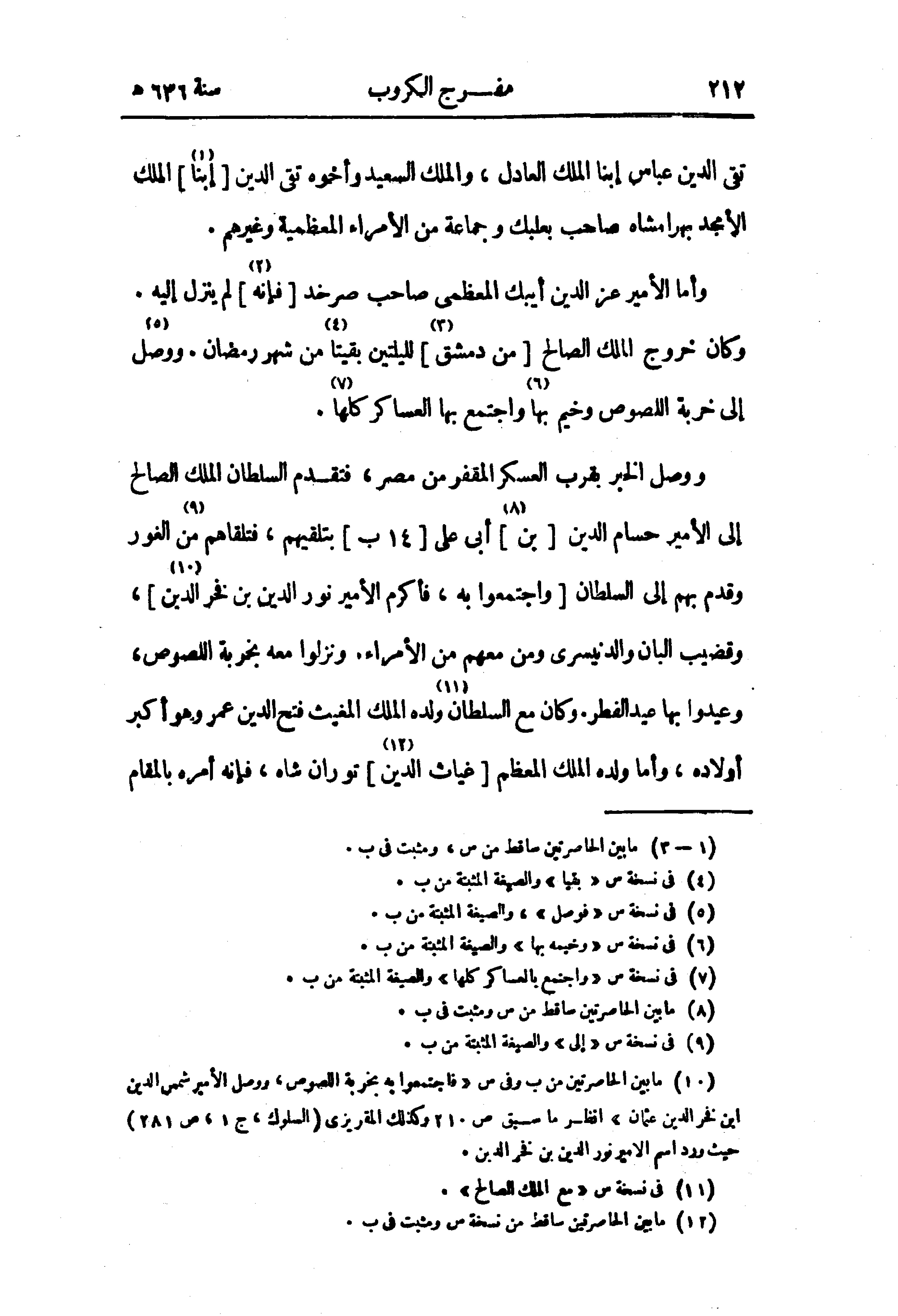 (¬10) ما بين الحاصرتين من ب وفى س «فاجتمعوا به بخربة اللصوص، ووصل الأمير شمس الدين ابن فخر الدين عثمان» انظر ما سبق ص 210 وكذلك المقريزى (السلوك، ج 1، ص 281) حيث ورد اسم الامير نور الدين بن فخر الدين.