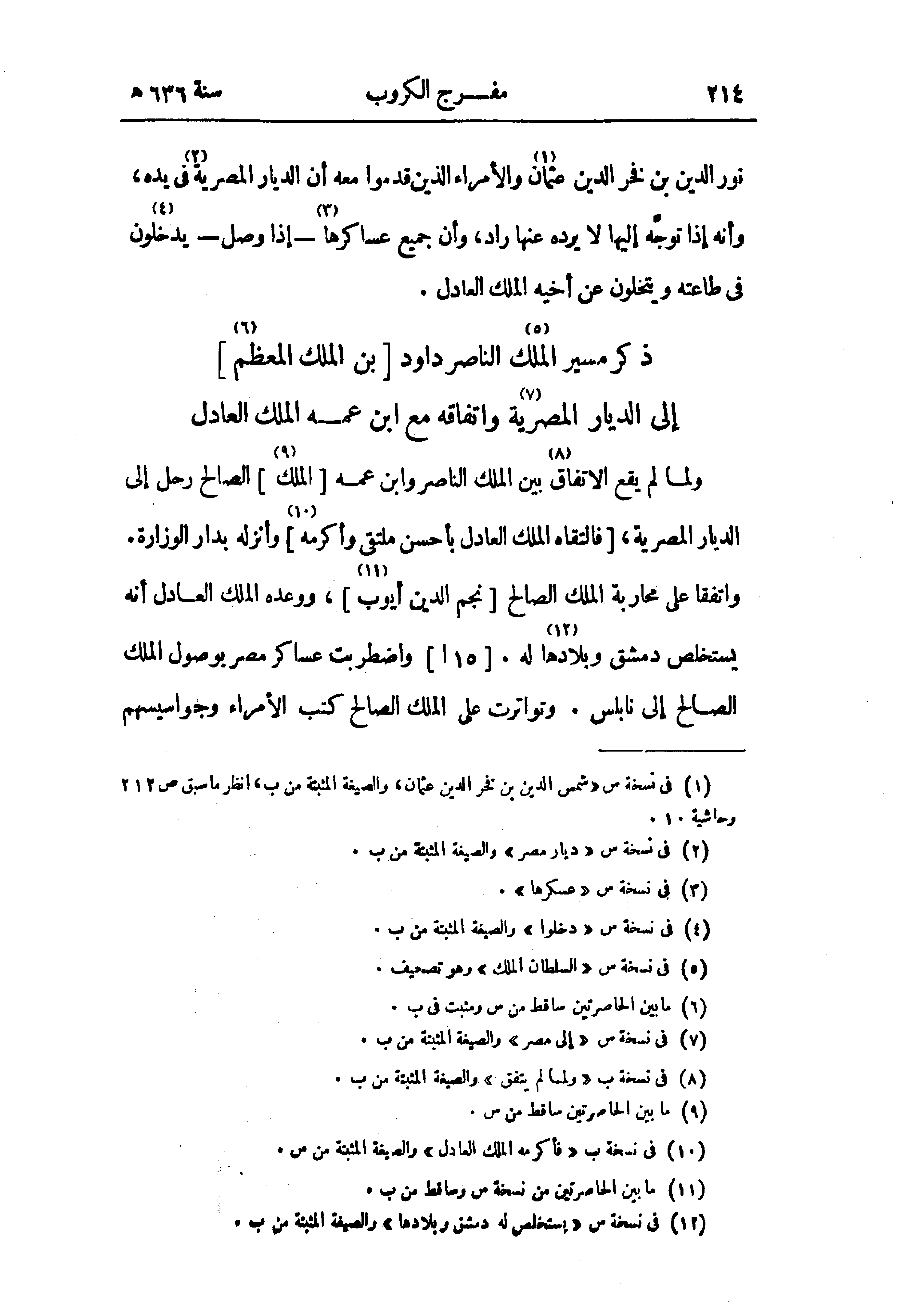 واتفقا على محاربة الملك الصالح [نجم الدين أيوب (¬11)]، ووعده الملك العادل أنه يستخلص دمشق وبلادها (¬12) له. [15 ا] واضطربت عساكر مصر بوصول الملك الصالح إلى نابلس. وتواترت على الملك الصالح كتب الأمراء وجواسيسهم