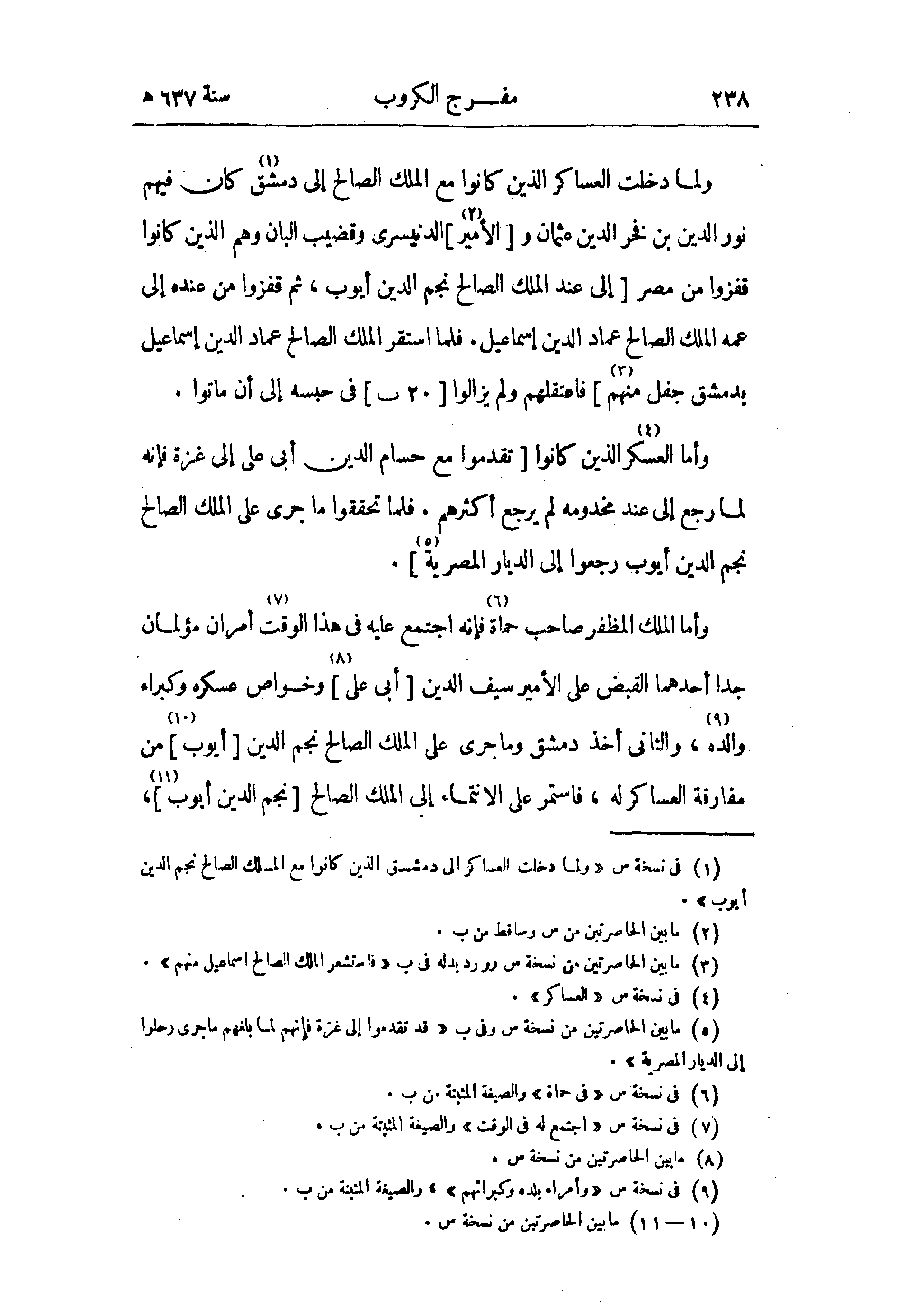 (¬1) في نسخة س «ولما دخلت العساكر إلى دمشق الذين كانوا مع الملك الصالح نجم الدين أيوب».