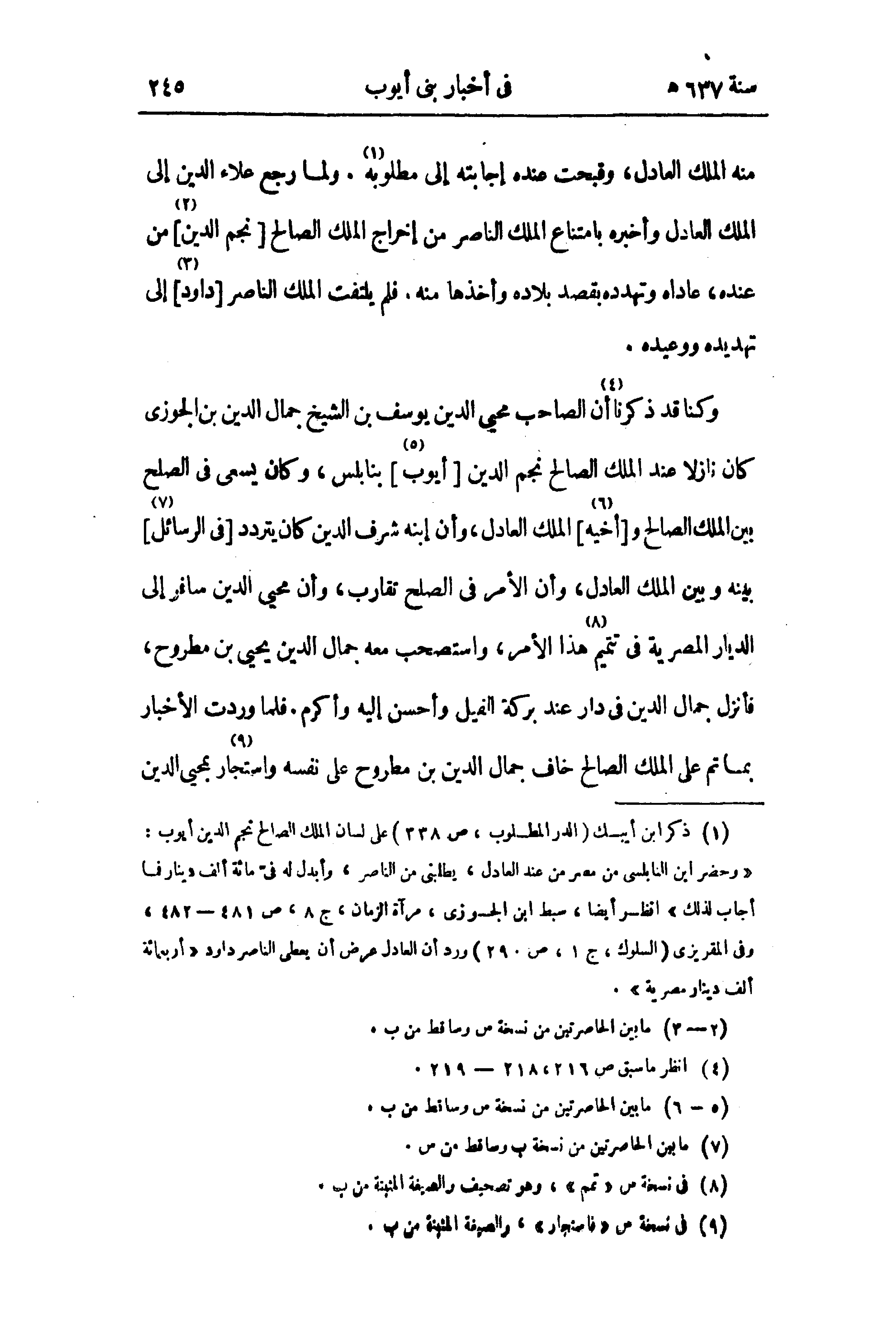 (¬1) ذكر ابن أيبك (الدر المطلوب، ص 338) على لسان الملك الصالح نجم الدين أيوب: «وحضر ابن النابلسى من مصر من عند العادل، يطلبنى من الناصر، وأبدل له فىّ مائة ألف دينار فما أجاب لذلك» انظر أيضا، سبط ابن الجوزى، مرآة الزمان، ج 8، ص 481 - 482، وفى المقريزى (السلوك، ج 1، ص 290) ورد أن العادل عرض أن يعطى الناصر داود «أربعمائة ألف دينار مصرية».