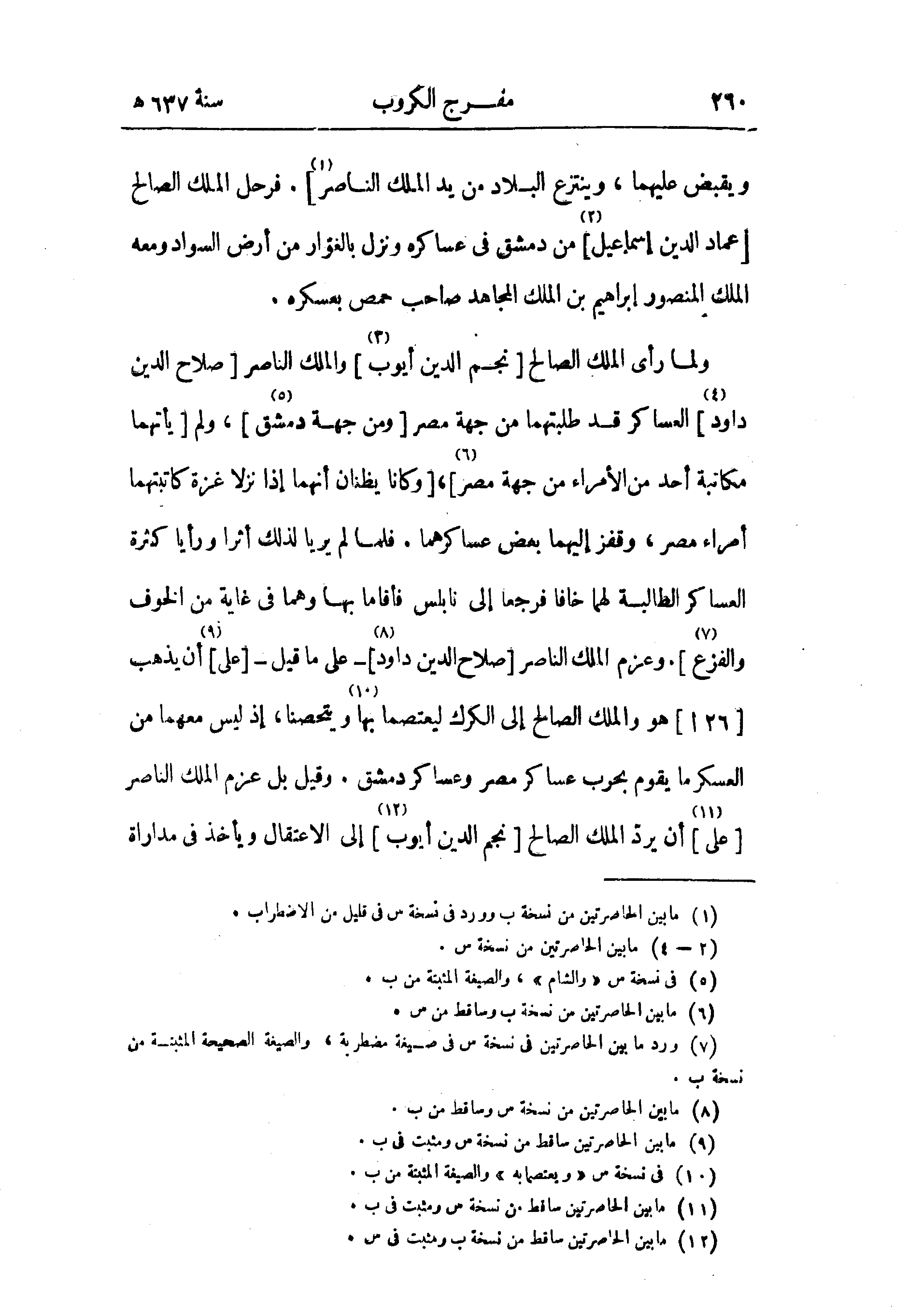 ولما رأى الملك الصالح [نجم الدين أيوب (¬3)] والملك الناصر [صلاح الدين داود (¬4)] العساكر قد طلبتهما من جهة مصر [ومن جهة دمشق (¬5)]، ولم [يأتهما مكاتبة أحد من الأمراء من جهة مصر (¬6)]، [وكانا يظنان أنهما إذا نزلا غزة كاتبتهما أمراء مصر، وقفز إليهما بعض عساكرهما. فلما لم يريا لذلك أثرا ورأيا كثرة العساكر الطالبة لهما خافا فرجعا إلى نابلس فأقاما بها وهما في غاية من الخوف والفزع (¬7)]. وعزم الملك الناصر [صلاح الدين داود (¬8)]- على ما قيل -[على] (¬9) أن يذهب [26 ا] هو والملك الصالح إلى الكرك ليعتصما بها (¬10) ويتحصنا، إذ ليس معهما من العسكر ما يقوم بحرب عساكر مصر وعساكر دمشق. وقيل بل عزم الملك الناصر [على (¬11)] أن يردّ الملك الصالح [نجم الدين أيوب (¬12)] إلى الاعتقال ويأخذ في مداراة