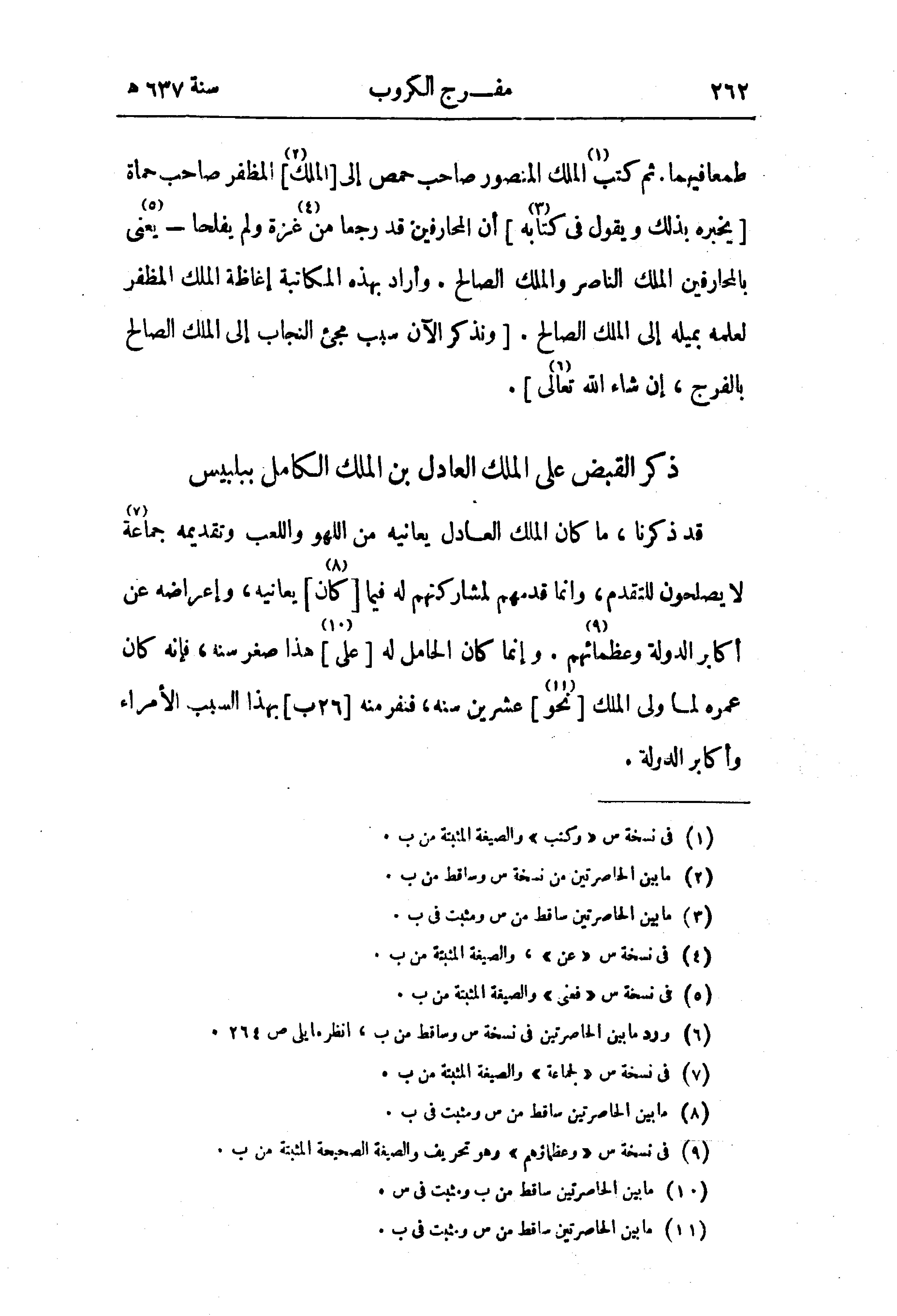 قد ذكرنا، ما كان الملك العادل يعانيه من اللهو واللعب وتقديمه جماعة (¬7) لا يصلحون للتقدم، وانما قدمهم لمشاركتهم له فيما [كان (¬8)] يعانيه، وإعراضه عن أكابر الدولة وعظمائهم (¬9). وإنما كان الحامل له [على (¬10)] هذا صغر سنه، فإنه كان عمره لما ولى الملك [نحو (¬11)] عشرين سنه، فنفر منه [26 ب] بهذا السبب الأمراء وأكابر الدولة.