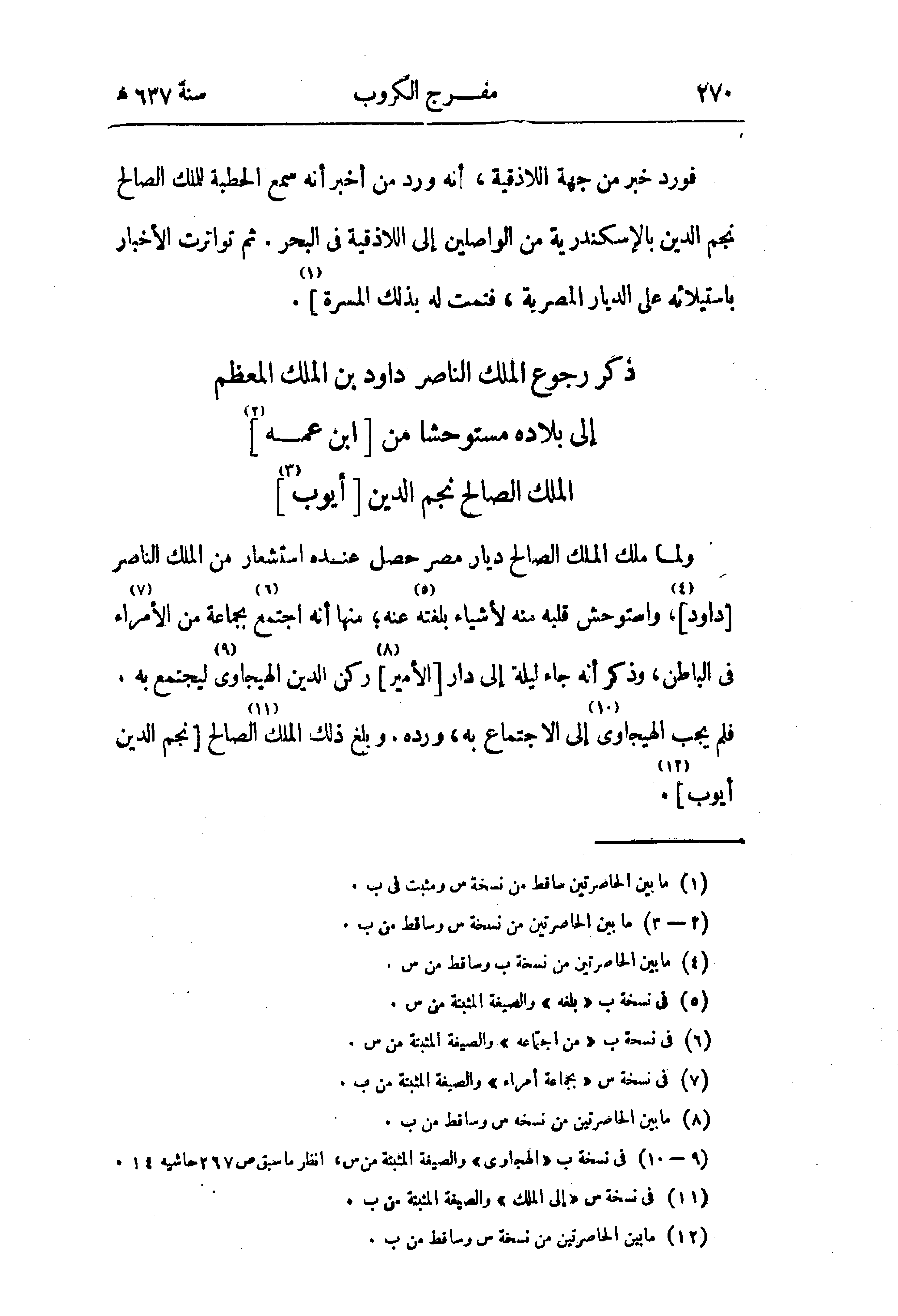 فورد خبر من جهة اللاذقية، أنه ورد من أخبر أنه سمع الحطبة للملك الصالح نجم الدين بالإسكندرية من الواصلين إلى اللاذقية في البحر. ثم تواترت الأخبار باستيلائه على الديار المصرية، فتمت له بذلك المسرة] (¬1).