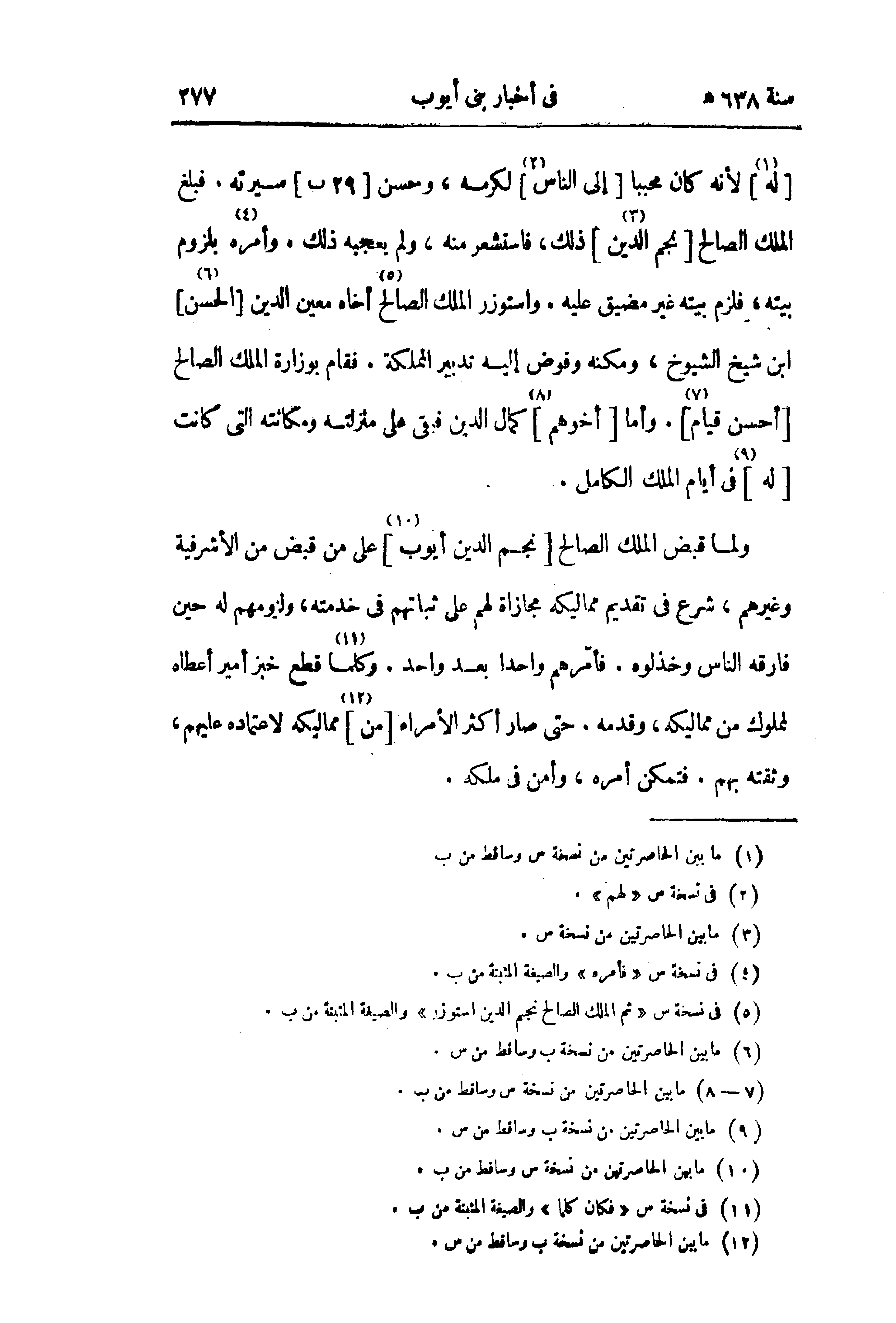 [له (¬1)] لأنه كان محببا [إلى الناس (¬2)] لكرمه، وحسن [29 ب] سيرته. فبلغ الملك الصالح [نجم الدين (¬3)] ذلك، فاستشعر منه، ولم يعجبه ذلك. وأمره (¬4) بلزوم بيته، فلزم بيته غير مضيق عليه. واستوزر الملك الصالح (¬5) أخاه معين الدين [الحسن (¬6)] ابن شيخ الشيوخ، ومكنه وفوض إليه تدبير المملكة. فقام بوزارة الملك الصالح [أحسن قيام (¬7)]. وأما [أخوهم] (¬8) كمال الدين فبقى على منزلته ومكانته التي كانت [له] (¬9) في أيام الملك الكامل.