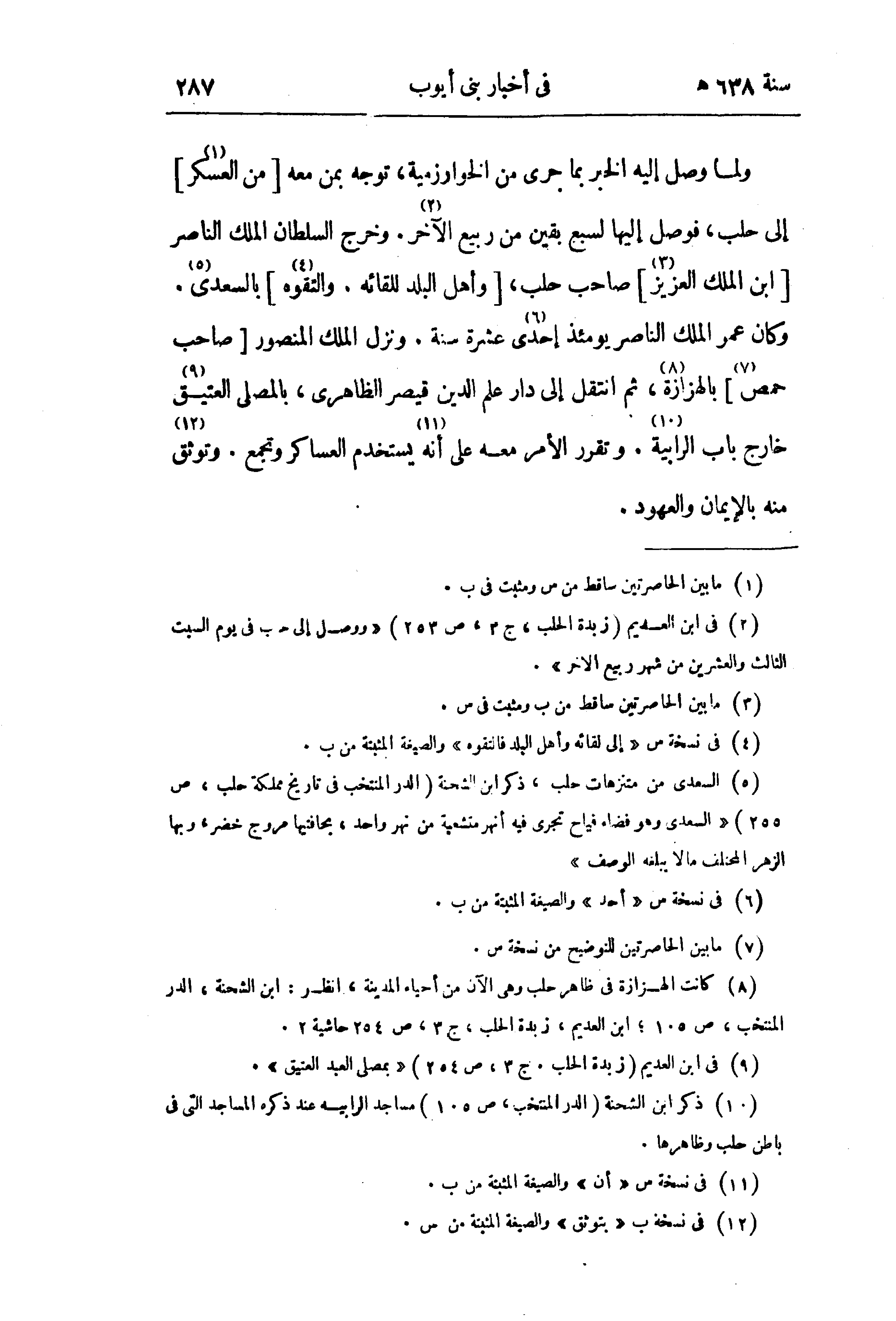 (¬8) كانت الهزازة في ظاهر حلب وهى الآن من أحياء المدينة، انظر: ابن الشحنة، الدر المنتخب، ص 105؛ ابن العديم، زبدة الحلب، ج 3، ص 254 حاشية 2.