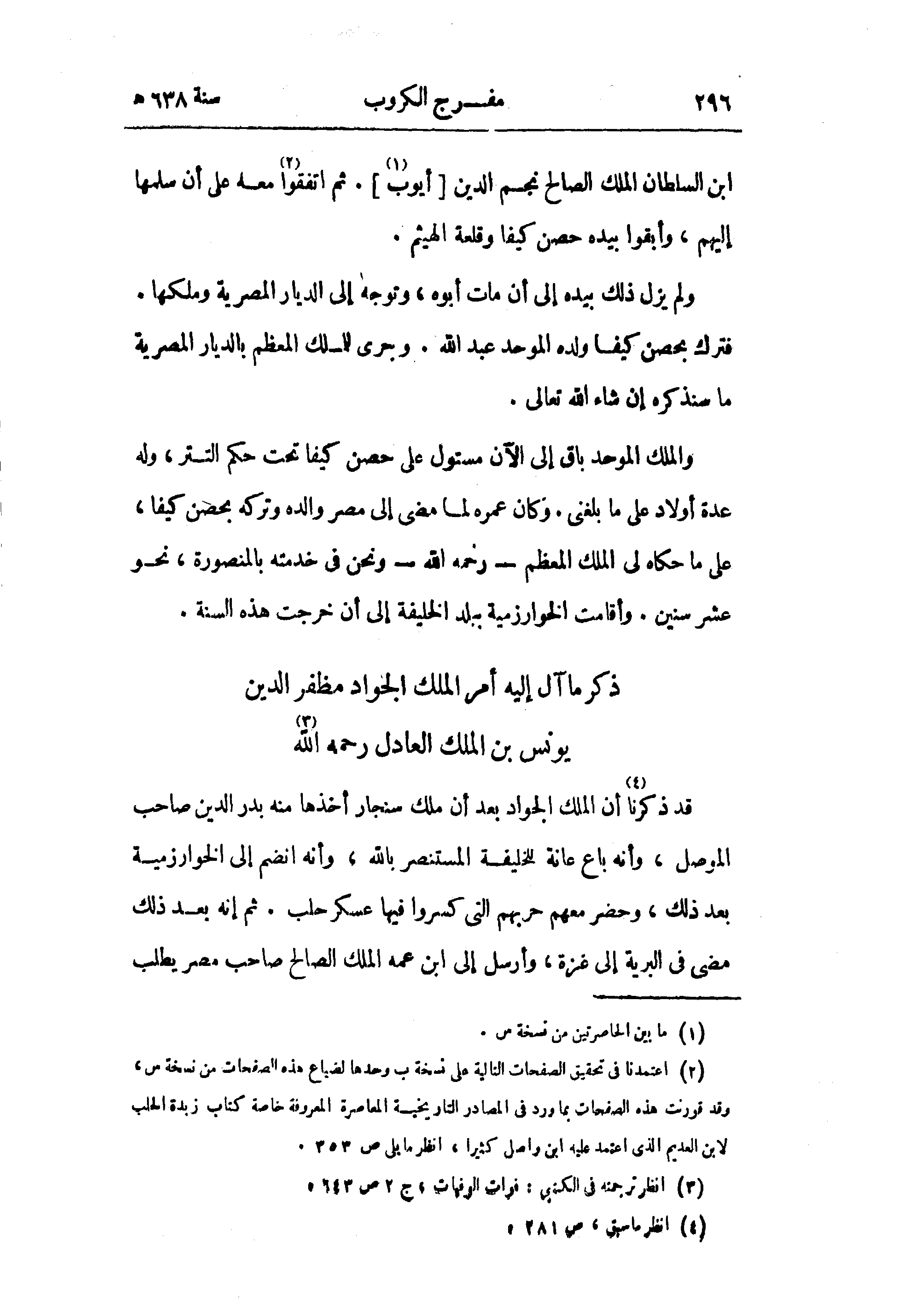 (¬2) اعتمدنا في تحقيق الصفحات التالية على نسخة ب وحدها لضياع هذه الصفحات من نسخة س، وقد قورنت هذه الصفحات بما ورد في المصادر التاريخية المعاصرة المعروفة خاصة كتاب زبدة الحلب لابن العديم الذى اعتمد عليه ابن واصل كثيرا، انظر مايلى ص 353.