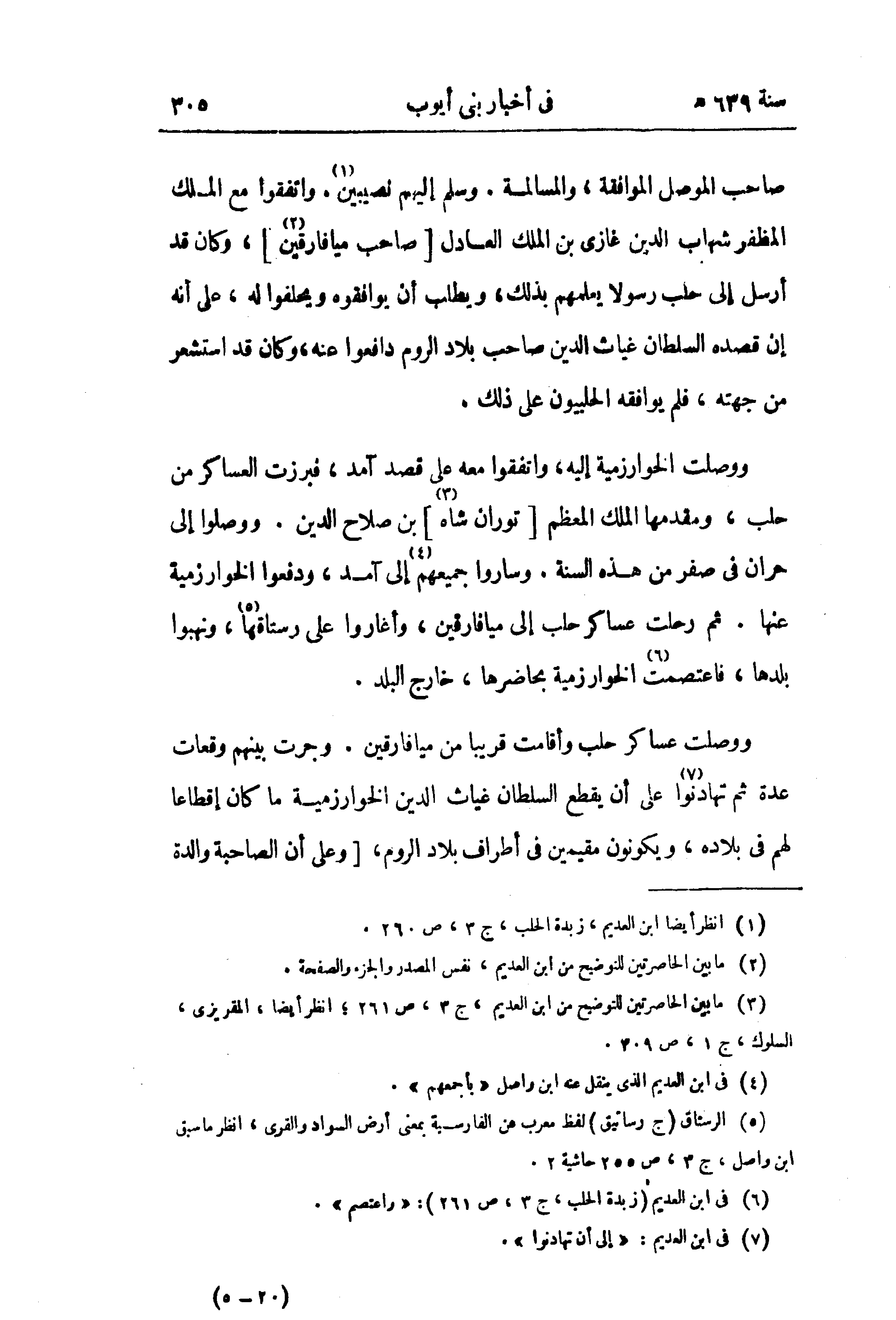 (¬3) ما بين الحاصرتين للتوضيح من ابن العديم، ج 3، ص 261؛ انظر أيضا، المقريزى، السلوك، ج 1، ص 309.