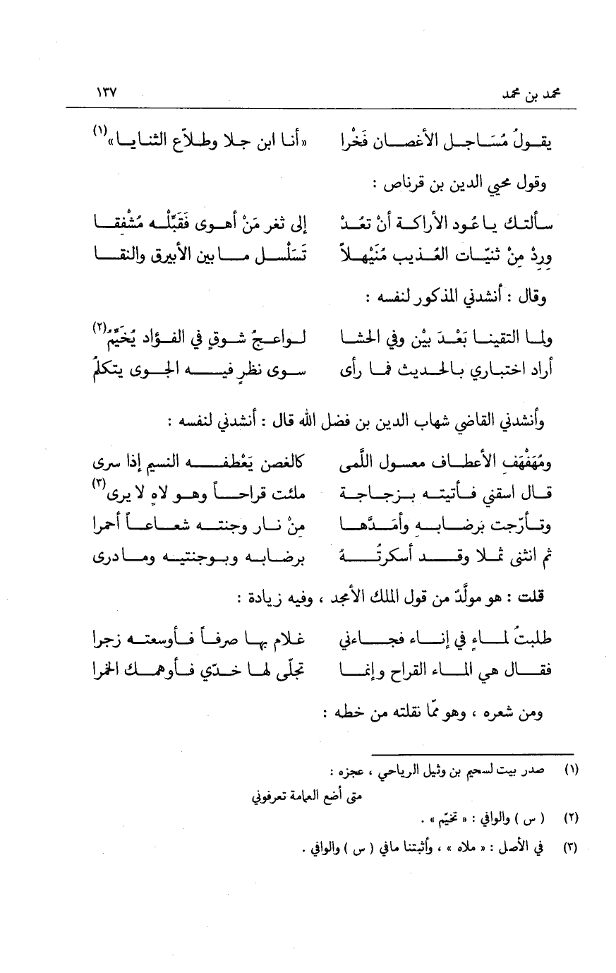 وأنشدني القاضي شهاب الدين بن فضل الله قال: أنشدني لنفسه: