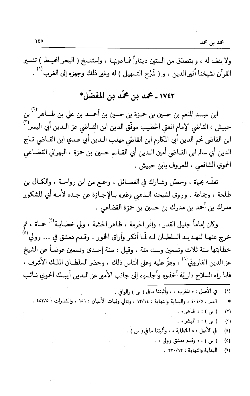 وكان إماماً جليل القدر، وافر الحرمة، ظاهر الحشمة، ولي خطابة حماة، ثم خرج عنها لتهديد السلطان له لما أنكر وأراق الخمور. وقدم دمشق في ... وولي خطابتها سنة ثلاث وتسعين وست مئة، وقيل: سنة إحدى وتسعين عوضاً عن الشيخ عز الدين الفاروثي، وعزّ عليه وعلى الناس ذلك، وحضر السلطان الملك الأشرف، فلما رآه السلاح دارية أخذوه وأجلسوه الى جانب الأمير عز الدين أيبك الحموي نائب