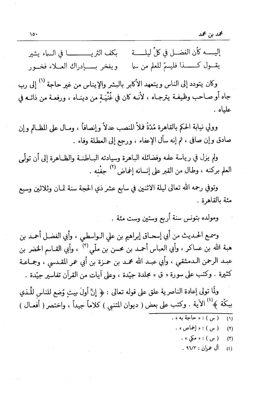 وكان يتودد الى الناس ويتعهد الأكابر بالبشر والإيناس من غير حاجة الى رب جاه أو صاحب وظيفة يترجاه، لأنه كان في غُنيةٍ من دنياه، ورفعة من ذاته في علياه.