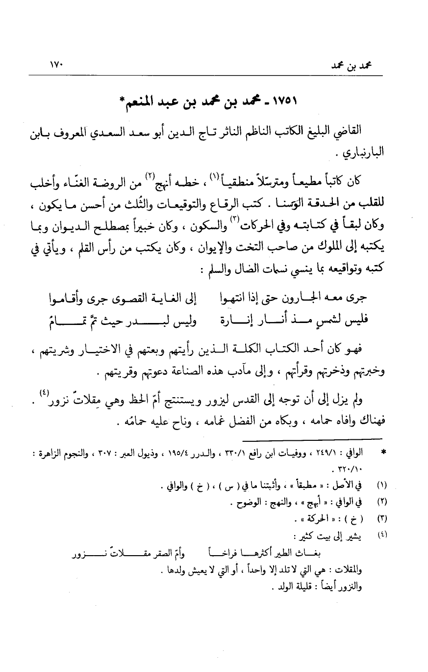 القاضي البليغ الكاتب الناظم الناثر تاج الدين أبو سعد السعدي المعروف بابن البرنباري.