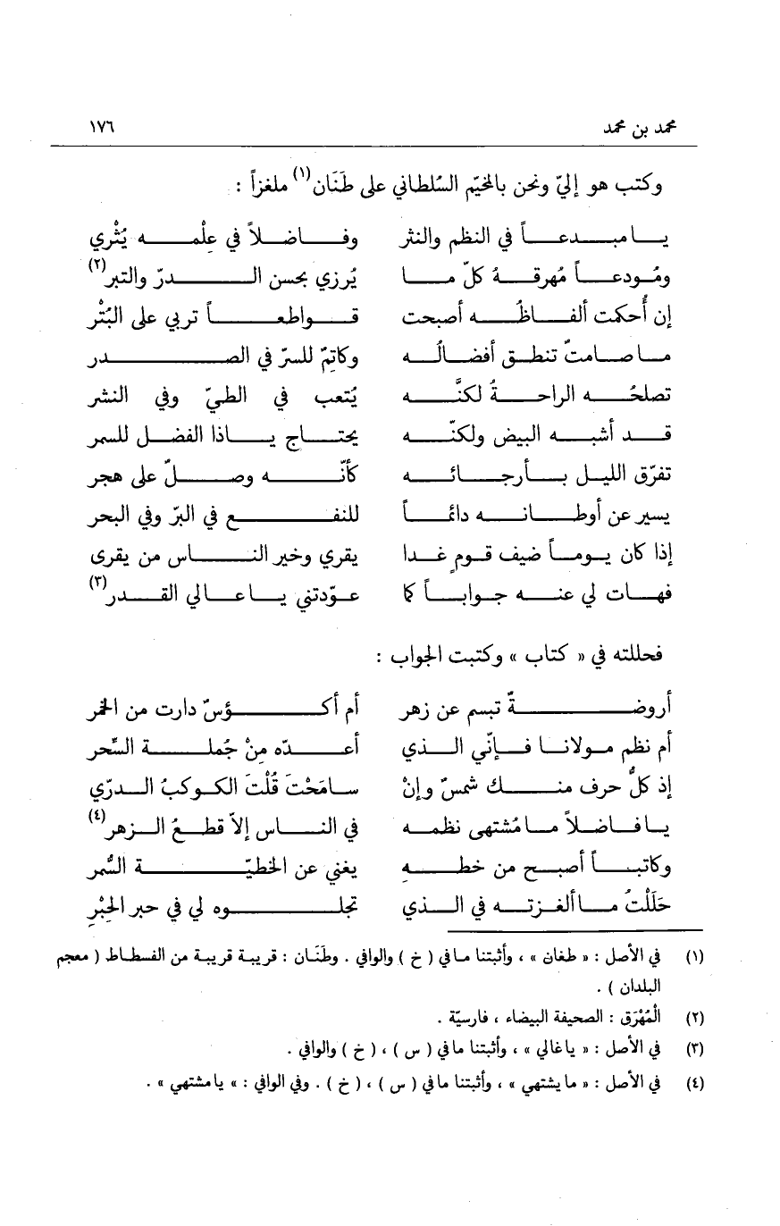 وكتب هو إليّ ونحن بالمخيم السلطاني على طَنان ملغزاً: