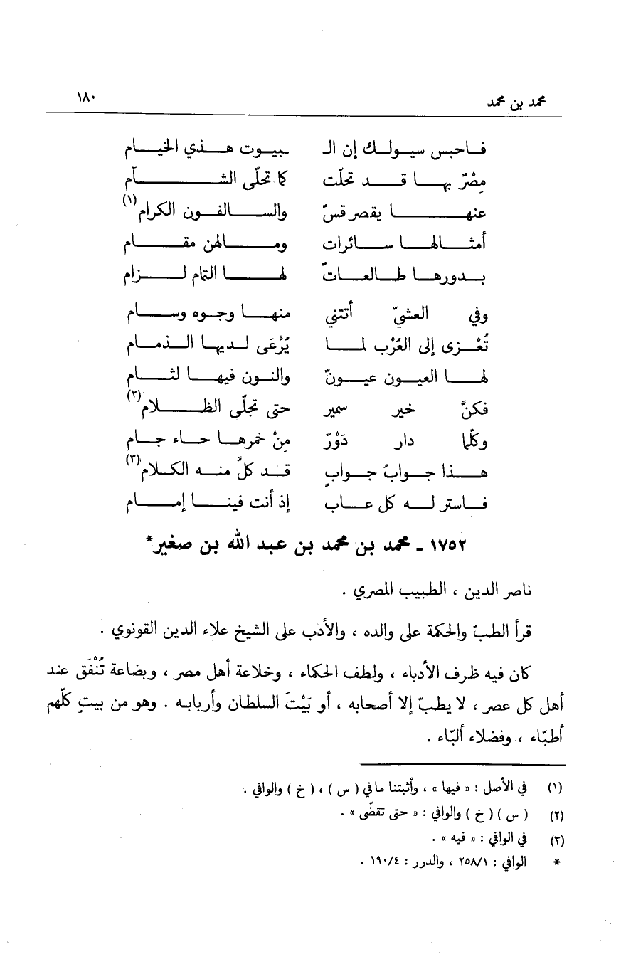 كان فيه ظرف الأدباء، ولطف الحكماء، وخلاعة أهل مصر، وبضاعة تنفق عند أهل كل عصر، لا يطبّ إلا أصحابه، أو بيتَ السلطان وأربابه. وهو من بيت كلهم أطباء، وفضلاء ألبّاء.