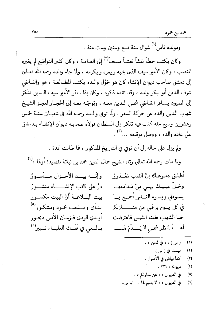 ولما مات رحمه الله تعالى رثاه الشيخ جمال الدين محمد بن نباتة بقصيدة أولها: