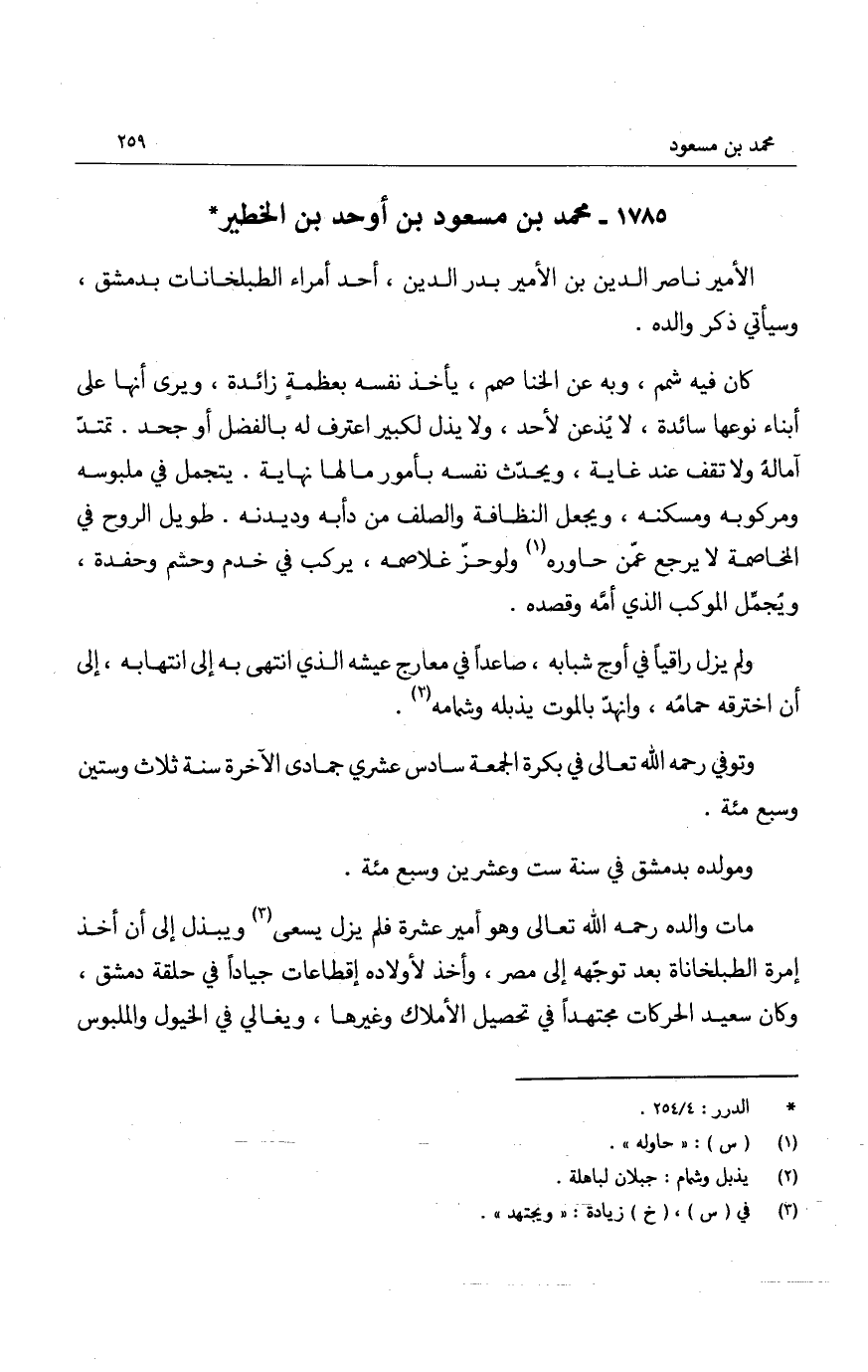الأمير ناصر الدين بن الأمير بدر الدين، أحد أمراء الطبلخانات بدمشق، وسيأتي ذكر والده.