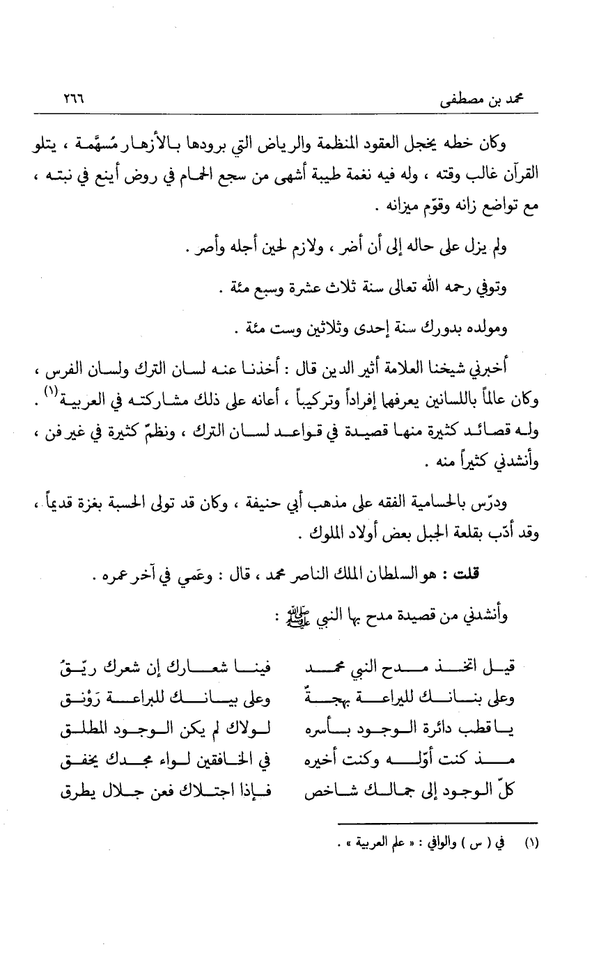 وأنشدني من قصيدة مدح بها النبي صَلَّى اللهُ عَلَيْهِ وَسَلَّمَ: