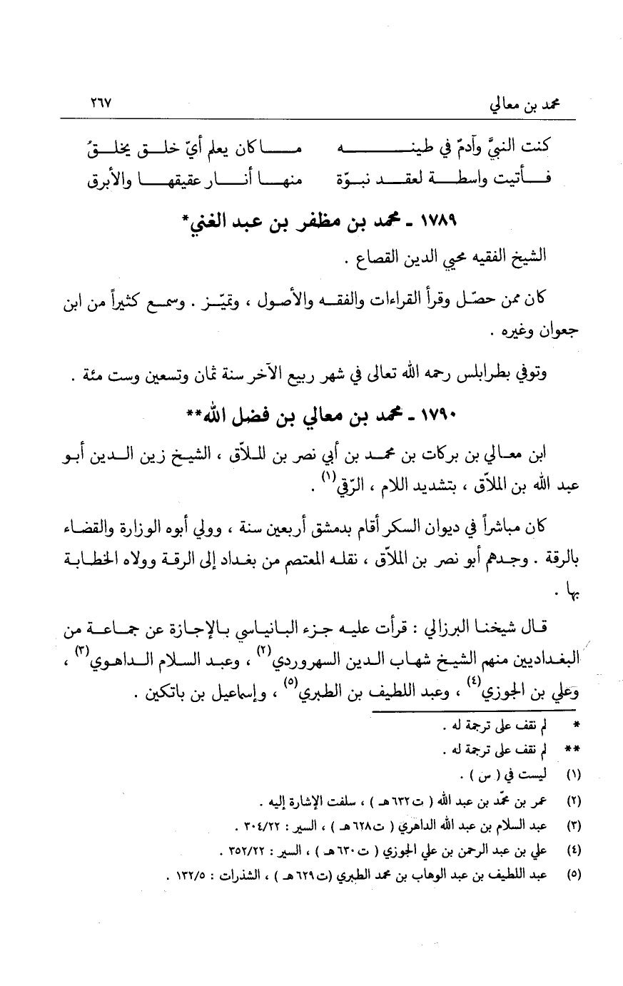 ابن معالي بن بركات بن محمد بن أبي نصر بن الملاق، الشيخ زين الدين أبو عبد الله بن الملاق، بتشديد اللام، الرّقي.